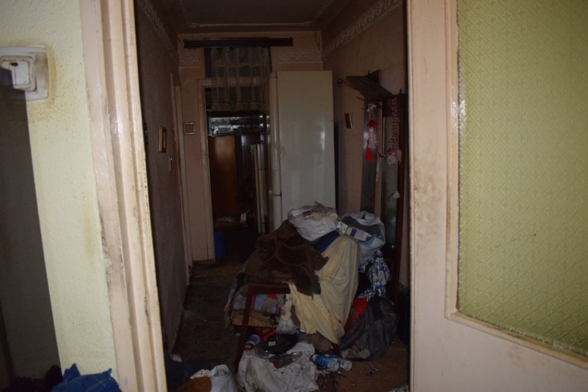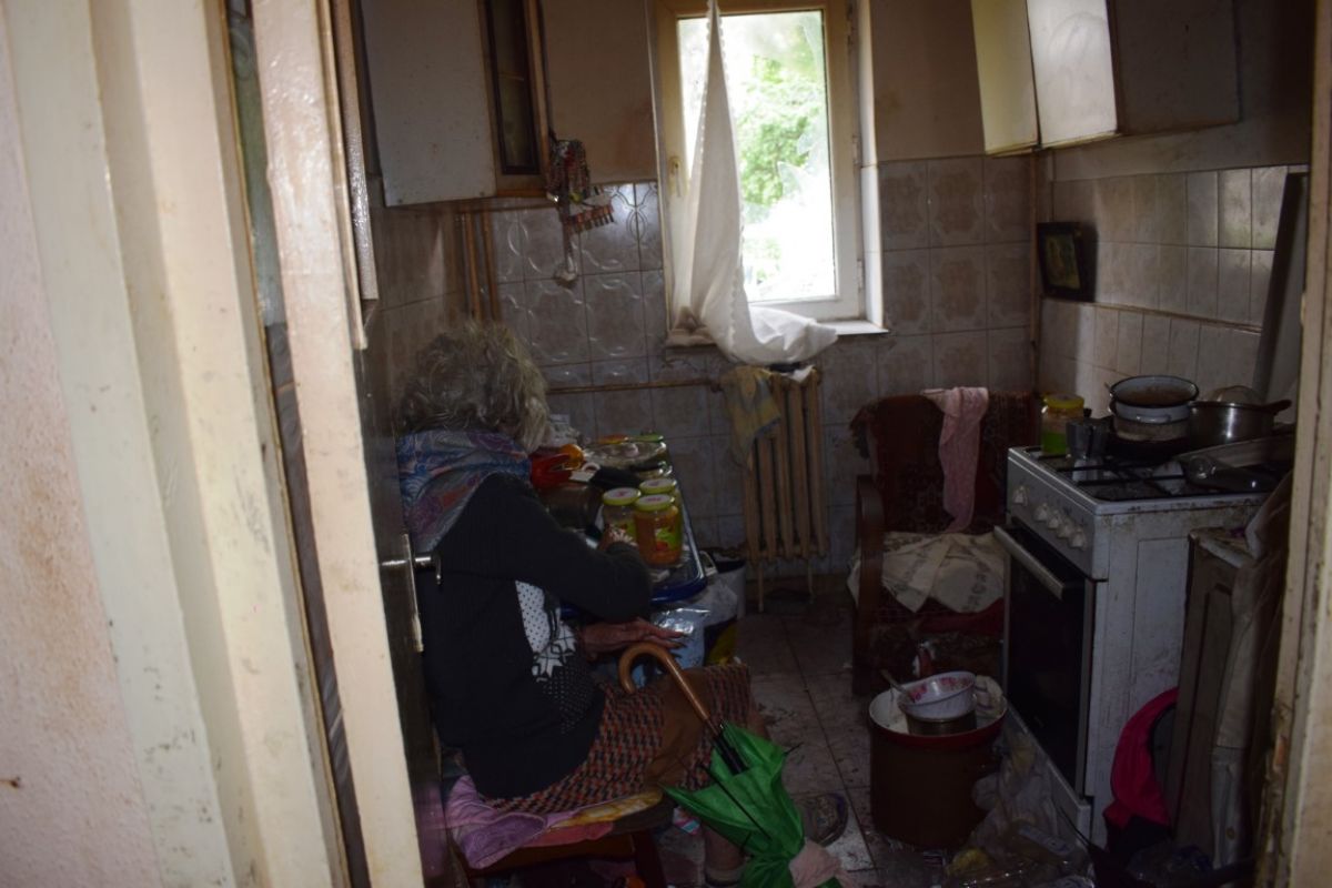 Mirosul greu de suportat se simte încă de pe casa scării, iar toți vecinii știu povestea femeii, dar mai ales problemele ei. În urmă cu mai mulți ani i-a murit un fiu iar de atunci a început să consume băuturi alcoolice. A fost convinsă să-și treacă apartamentul pe numele unui nepot, însă acesta potrivit unei rude, nu ar avea grijă deloc de ea.