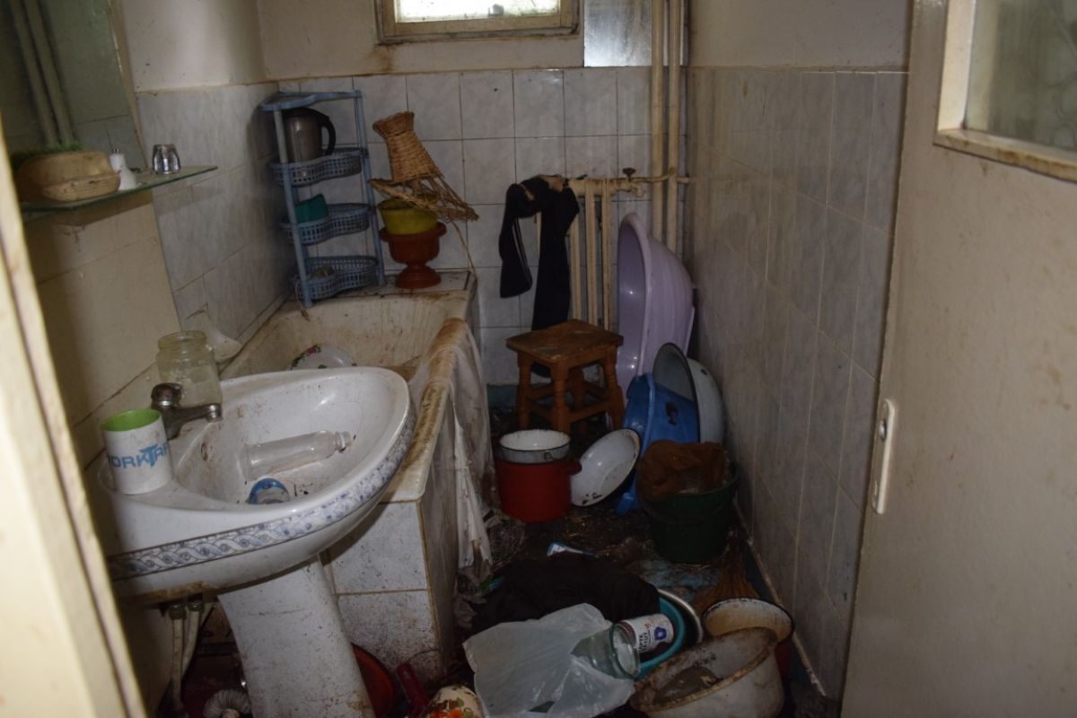 În jurul ei, mormane de mizerie în toate camerele. Inclusiv patul era ros de șobolani. Geamurile de la apartament erau sparte, iar bătrâna a susținut că niște copii au aruncat cu pietre. În locuință nu s-a mai făcut curățenie de ani buni și probabil că femeia este expusă focarului de infecție în care își duce bătrânețile.