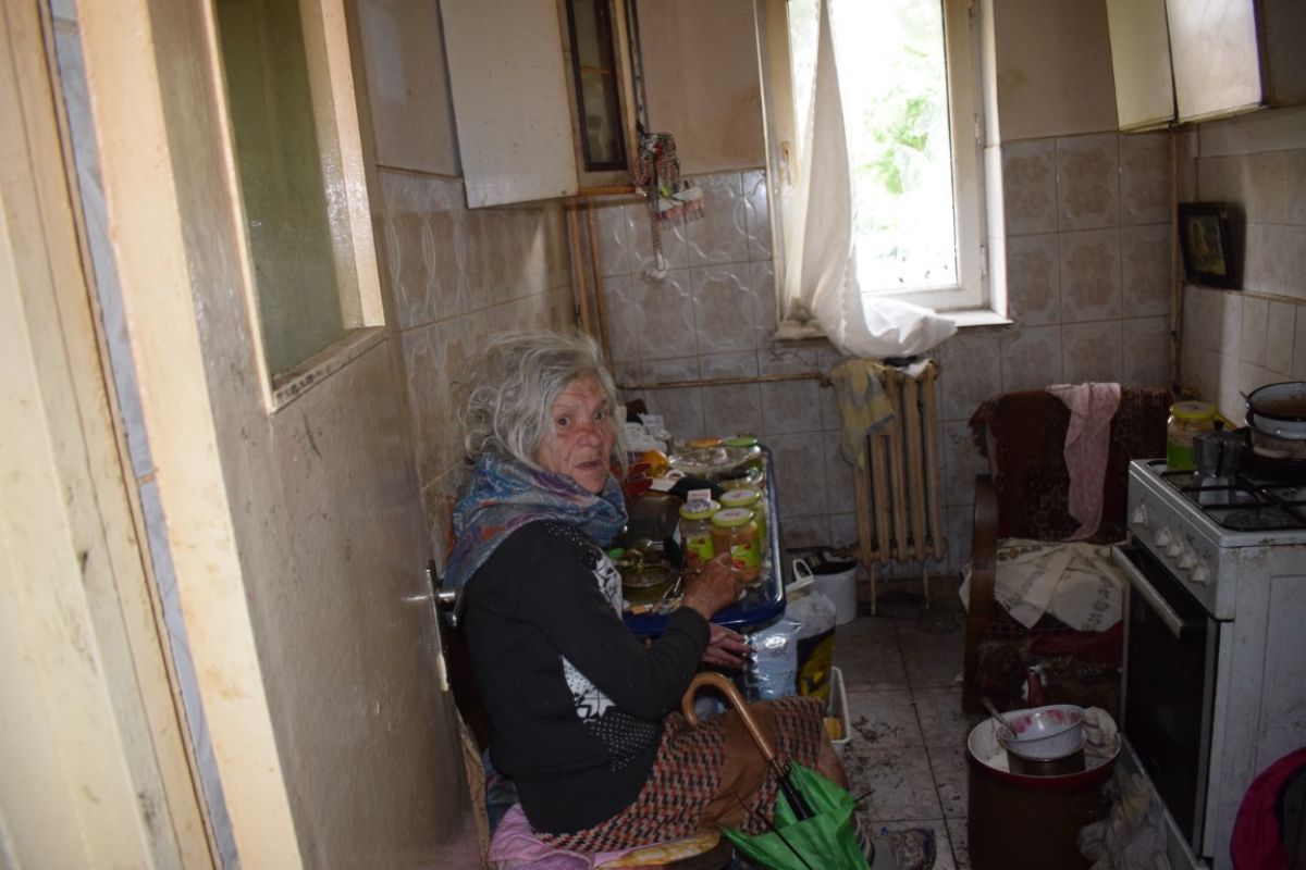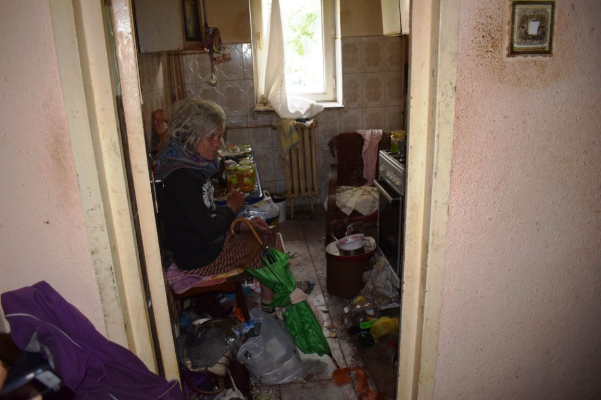 Maria Diaconu are 92 de ani și locuiește într-un apartament situat la parterul unui bloc din spatele Cinematografului Unirea. Stă într-o mizerie de nedescris și are în casă inclusiv șobolani.