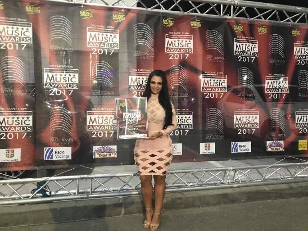 Evenimentul s-a desfasurat intr-o locatie exclusivista de la malul mari. Francisca frumoasa artista din Botosani ce a facut milioane de vizualizari pe Youtube cu piesele sale Piatra de pe inima si Lacat la inima, a fost premiata in cadrul evenimentului Mamaia Music Awards! A primit premiul pentru una dintre cele mai bune voci feminine si cel mai exotic look, se arată într-un comunicat de presă venit pe adresa redacţiei.