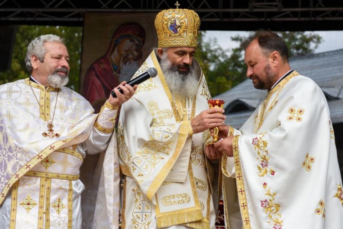 Slujba Sfintei Liturghii a fost săvârșită pe un podium special amenajat în curtea parohiei de către PS Antonie, delegatul Înaltpreasfințitului Părinte Mitropolit Teofan, dimpreună cu un sobor de preoți și diaconi. Tot duminică, ierarhul a binecuvântat și casa parohială.