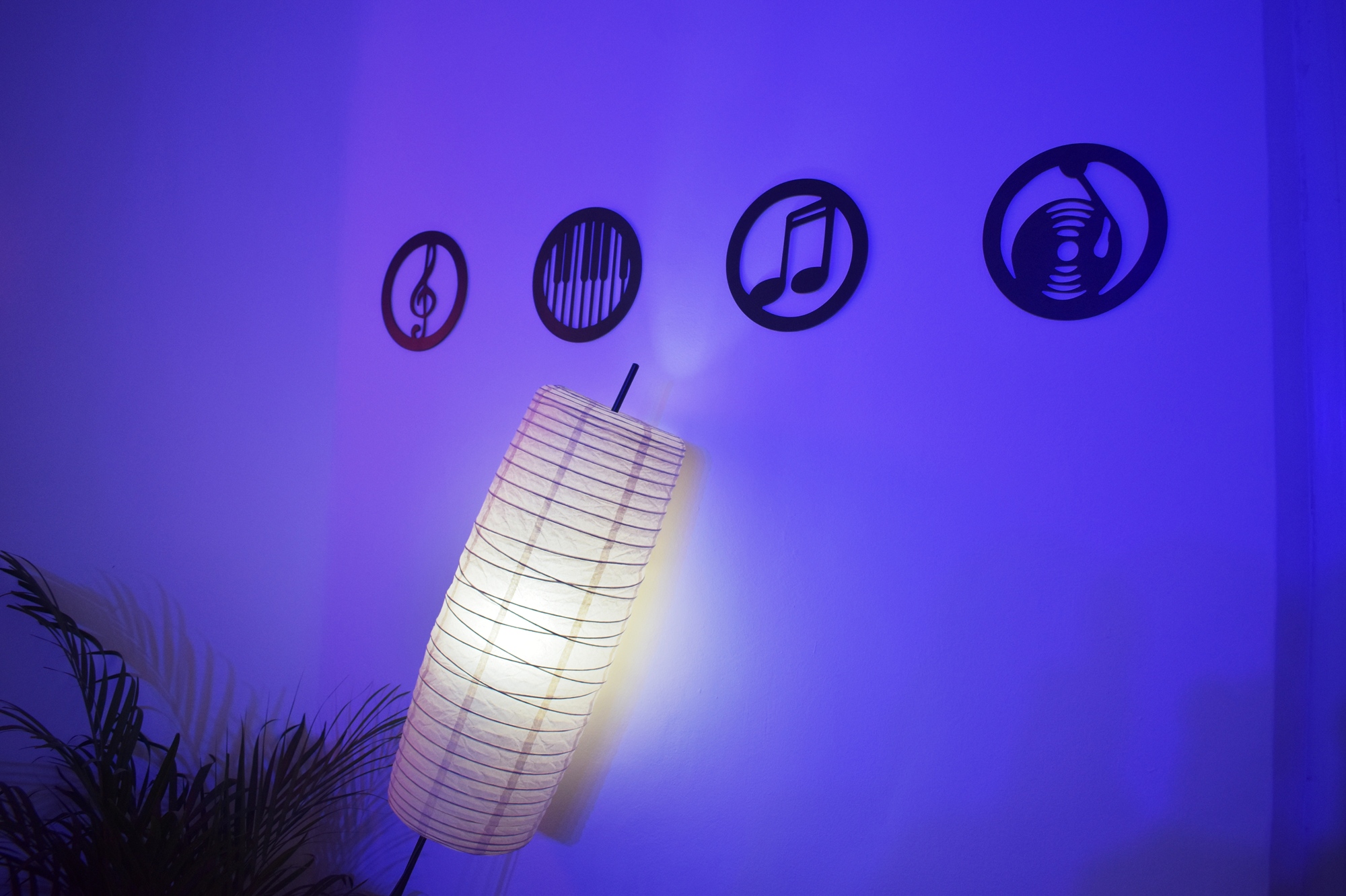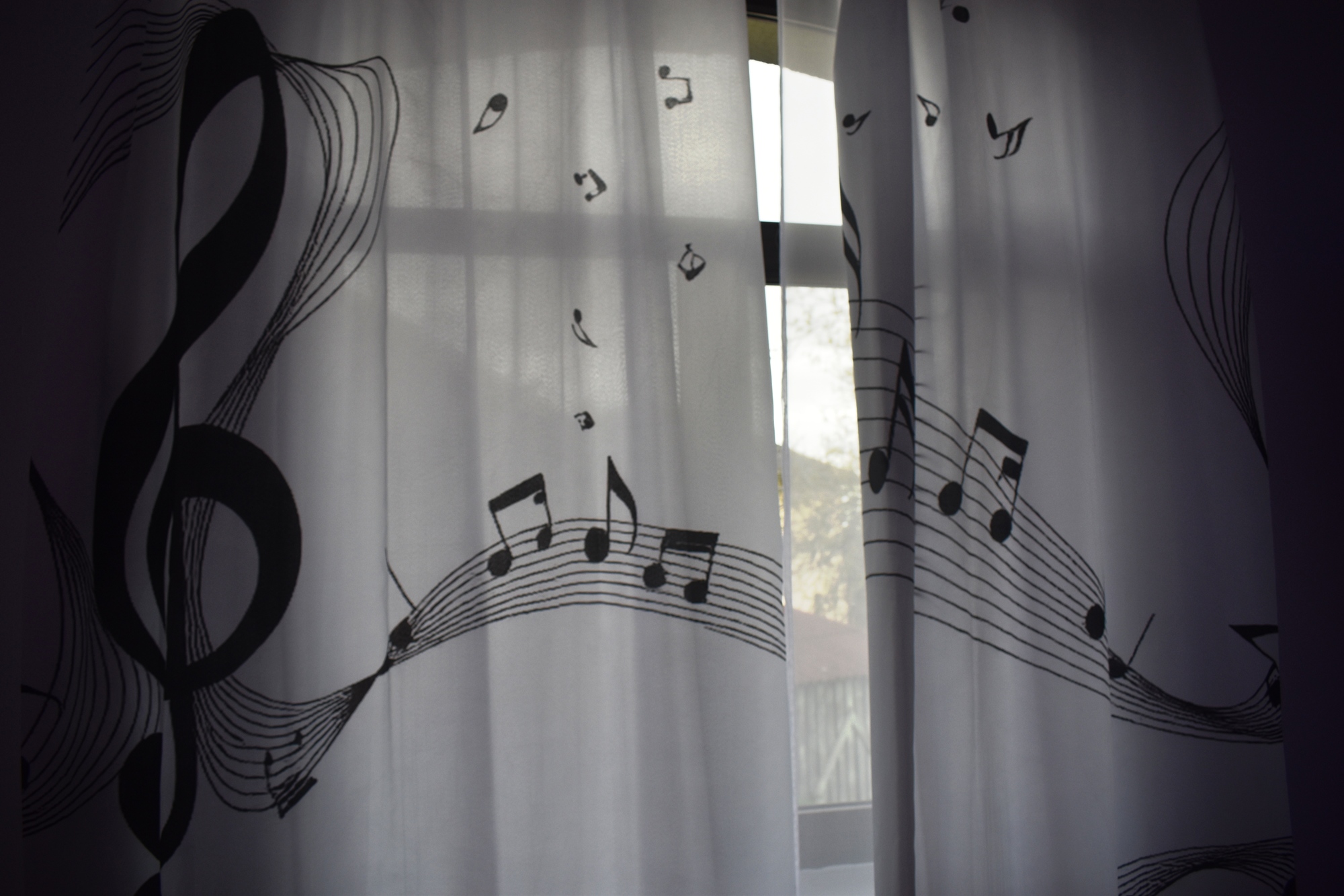 Este spațiul desprins parcă dintr-o poveste, unde de la perdele până la pixuri, totul este amenajat cu note muzicale, ca un imens portativ.