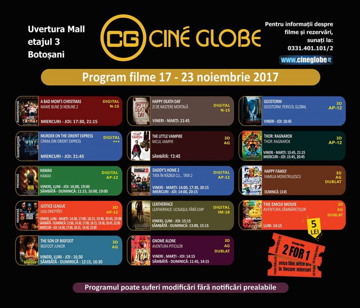 În perioada 17 – 23 noiembrie 2017 Cine Globe te invită să urmărești avampremierele A Bad Moms Christmas şi Murder on the Orient Express, alături de alte două premiere.