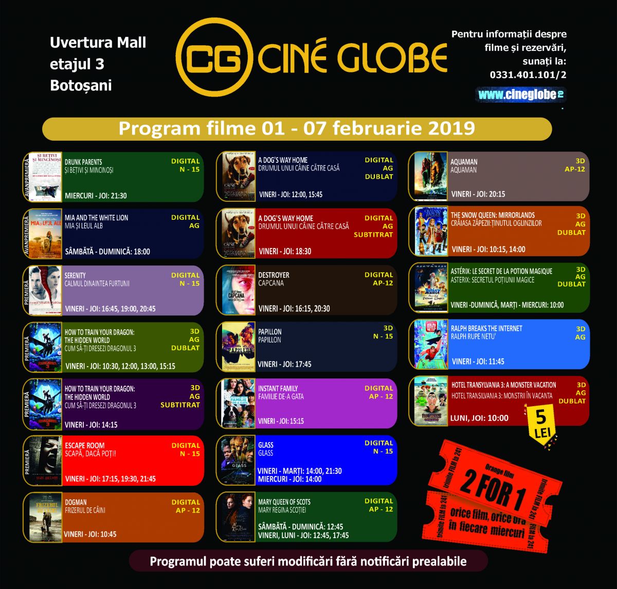 Vezi mai jos Lista completă a filmelor care rulează la Cine Globe