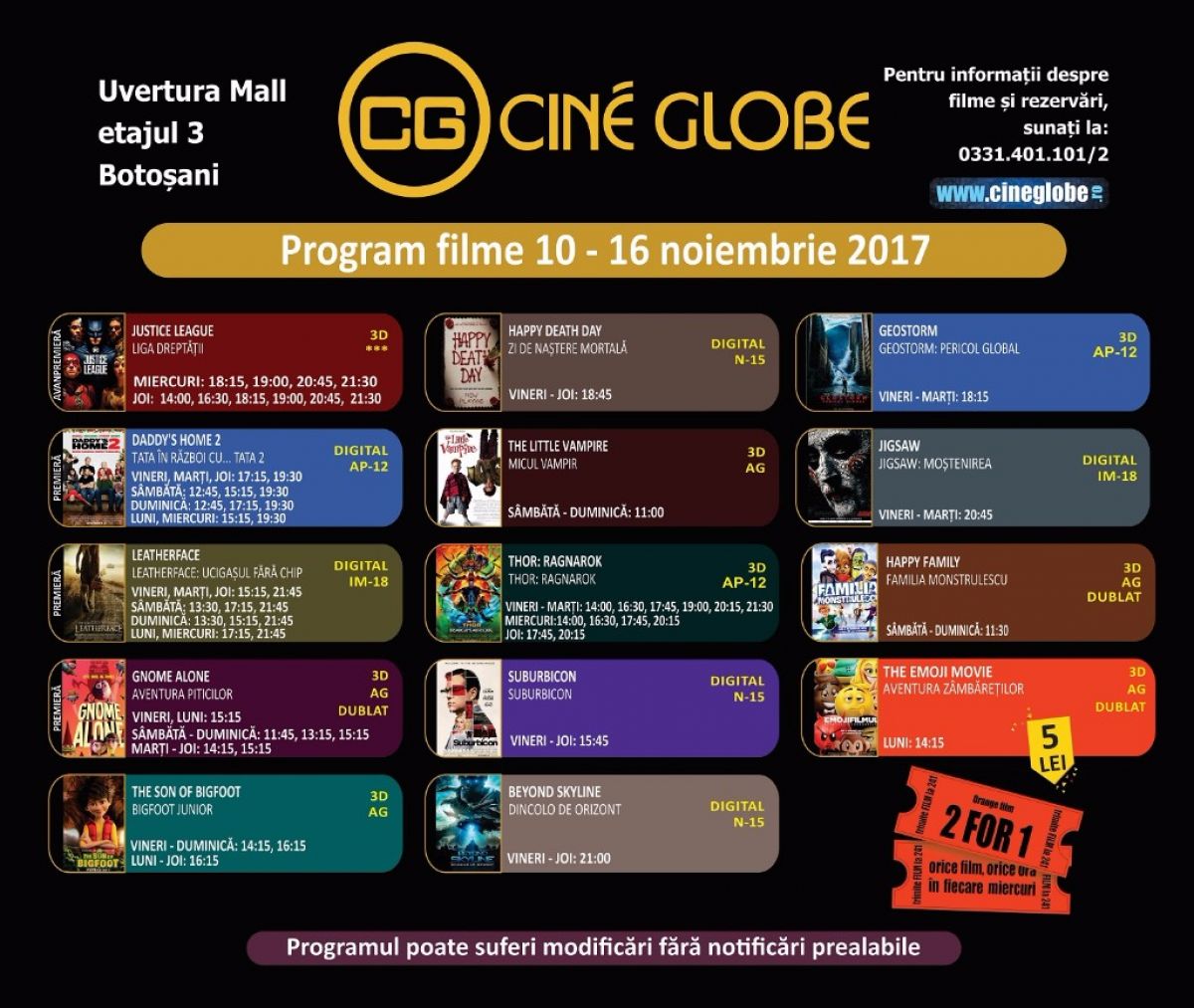 Noi pelicule pline de suspans şi mult umor rulează la Cine Globe, din incinta Uvertura Mall, în perioada 10-16 noiembrie.