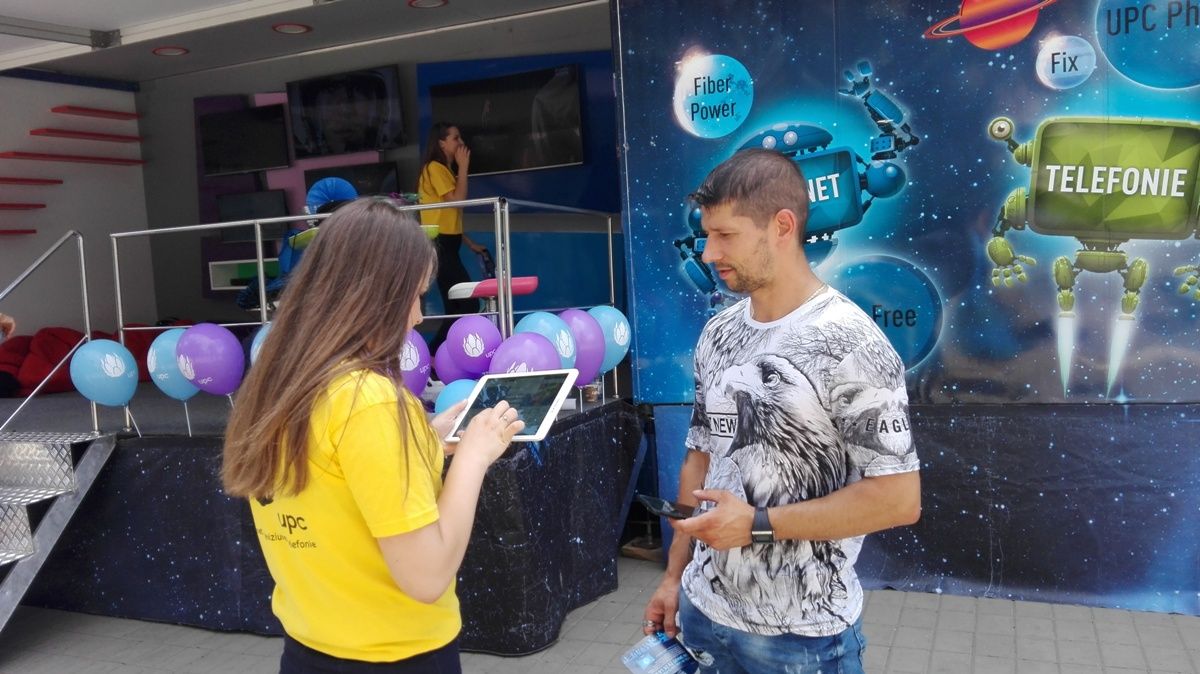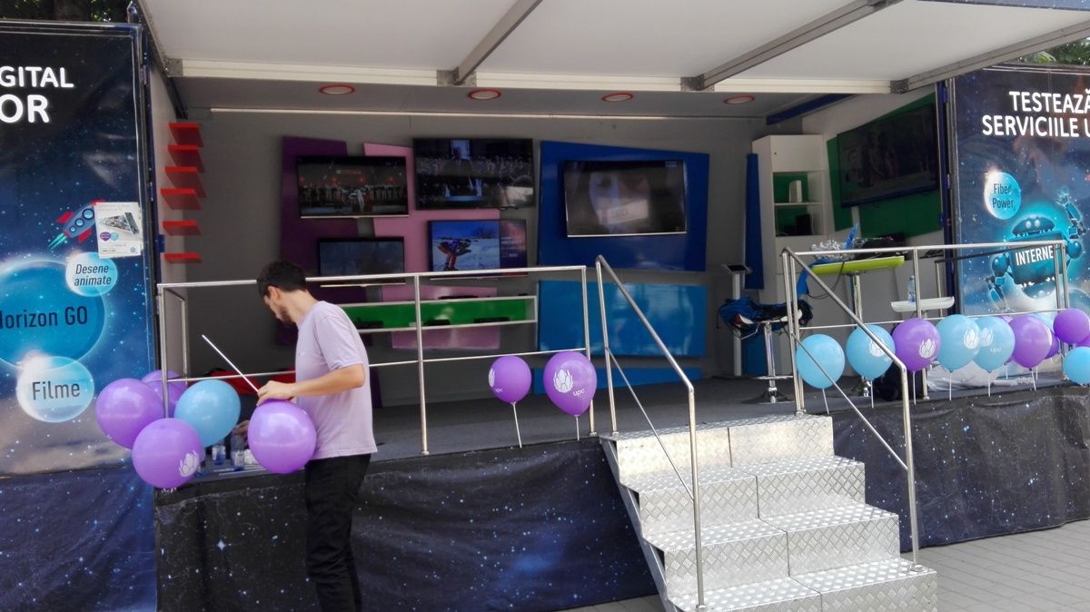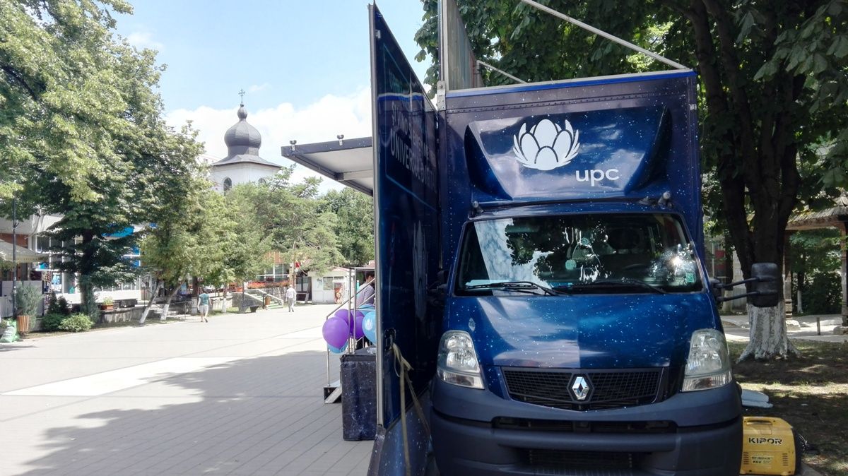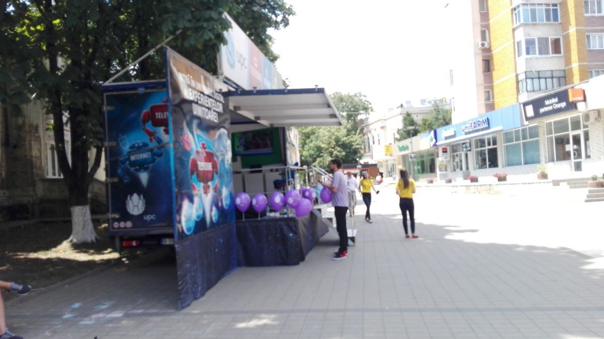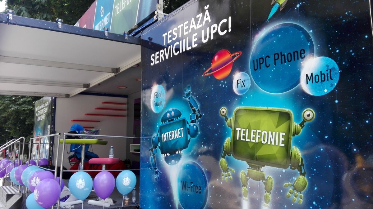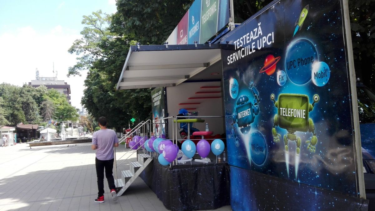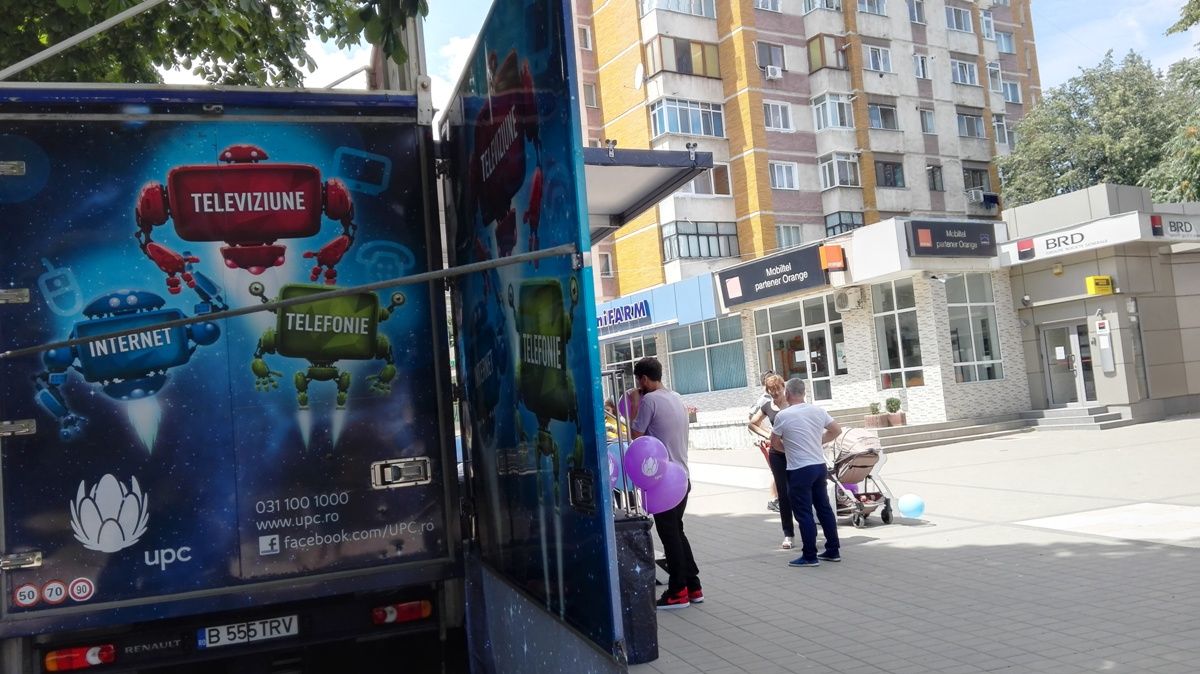 UPC a parcat un camion special vis-a-vis de fosta agenție BRD, unde își face reclamă la serviciile pe care le oferă. Mijlocul auto a fost amenajat ca un fel de magazin mobil în care sunt montate mai multe televizoare, iar două tinere cu tablete derulează la rândul lor o campanie de promovare.