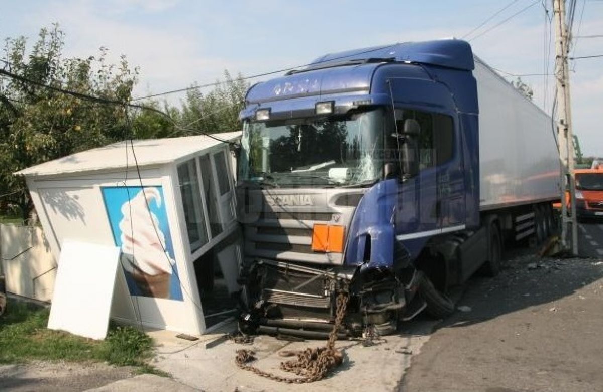 Un autotren înmatriculat în judeţul Vaslui, care se deplasa dinspre Suceava spre Botoşani, a părăsit şoseaua, a acroşat şi avariat doi stâlpi de alimentare cu electricitate, a lovit un stâlp de semnalizare şi a distrus în final un chioşc de îngheţată, aflat pe partea dreaptă a drumului. În urma impactului puternic cabina autotrenului marca Scania a fost distrusă, şoferul scăpând cu leziuni uşoare.