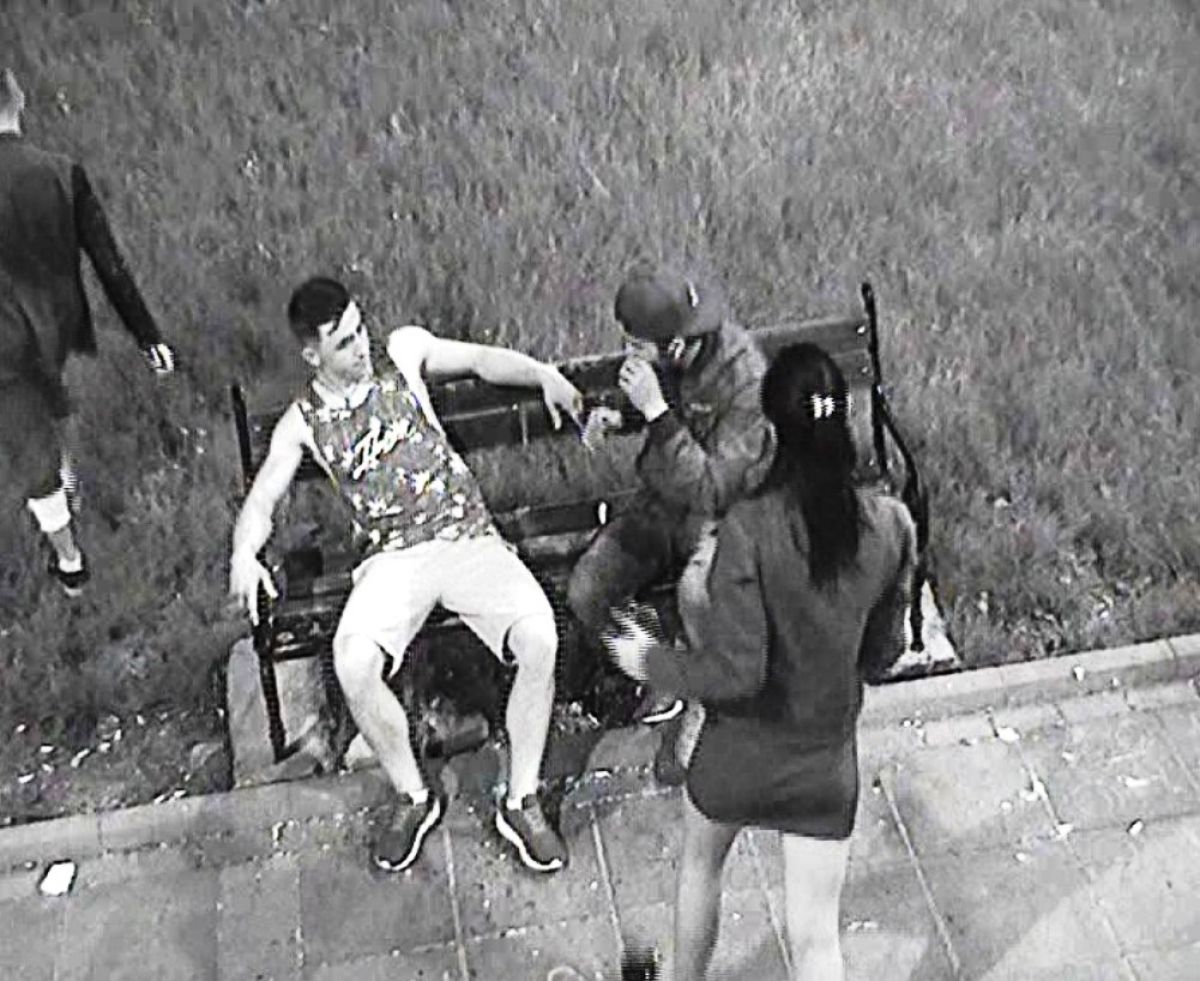 După unele mişcări provocatoare făcute de fată în braţele unui băiat, distracţia în aer liber a degenerat. Unul dintre băieţi s-a urinat în apropiere, iar alţii doi s-au apucat de rupt banca. În cel mai propriu sens al cuvântului! La început au încercat să o facă izbindu-se cu şezutul şi când au văzut că nu reuşesc au sărit cu picioarele pe dânsa. Într-un final au izbândit şi au făcut banca bucăţi. Nu s-au mulţumit doar cu ruptul şi au şi smuls-o efectiv din şuruburi, după care au fugit.