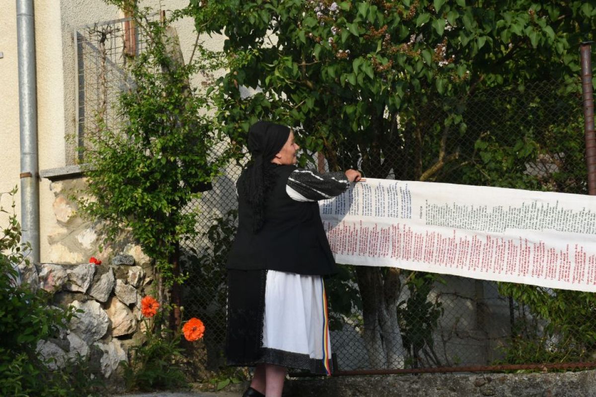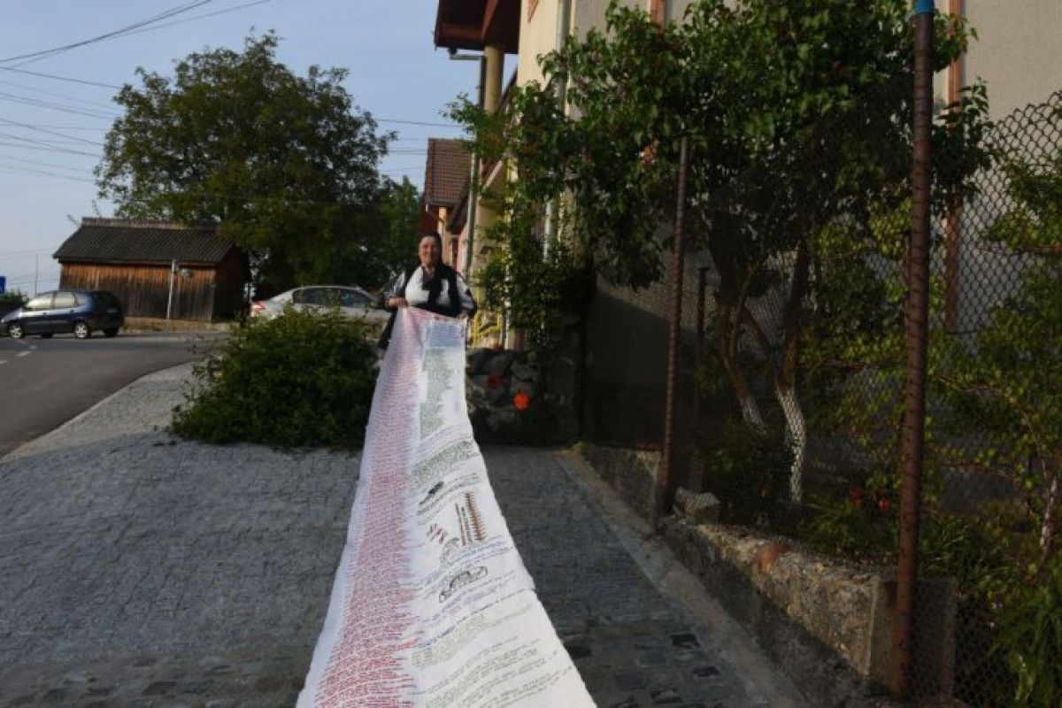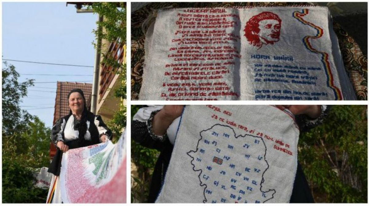 Maria Todor în vârstă de 71 de ani din localitatea Cugir, judeţul Alba este demnă de Cartea Recordurilor. Ştie pe de rost toate cele 98 de strofe ale poeziei. Ea a cusut versurile cu mare migală timp de trei ani. Tot pe aceeași pânză, păstrată într-o straiță, a rezervat spații mai mici pentru: „Hora Unirii”, Balada „Miorița”, un manuscris al poetului Mihai Eminescu, proverbe și zicători, pilde, un mic „colț destinat pentru rugăciune”, dar și ilustrații precum: „Coloana Infinitului” și „Cumințenia Pământului”, opere ale marelui Brâncuși, Vioara lui George Enescu, „Carul cu boi” (din Ponor).
