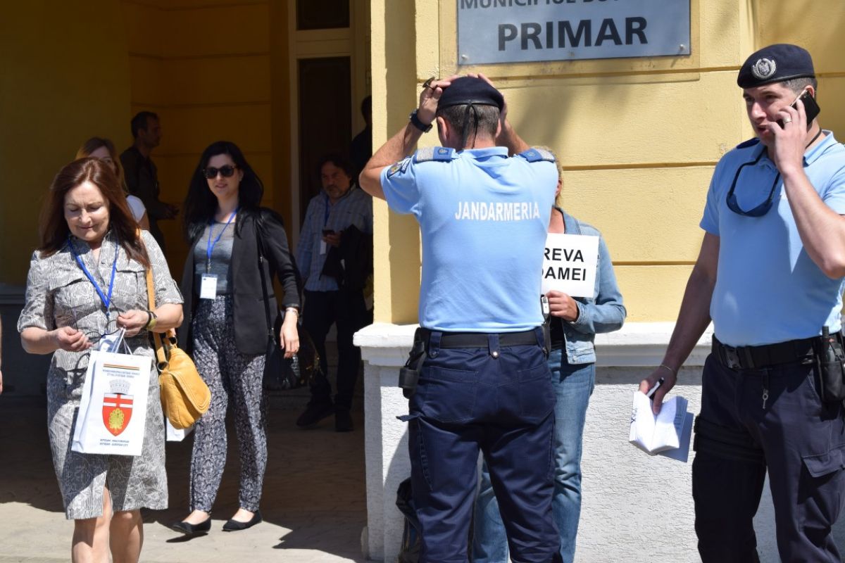 Femeia care a intrat în greva foamei era monitorizată de jandarmi în cazul în care i s-ar face rău, pentru a primi asistență medicală.
