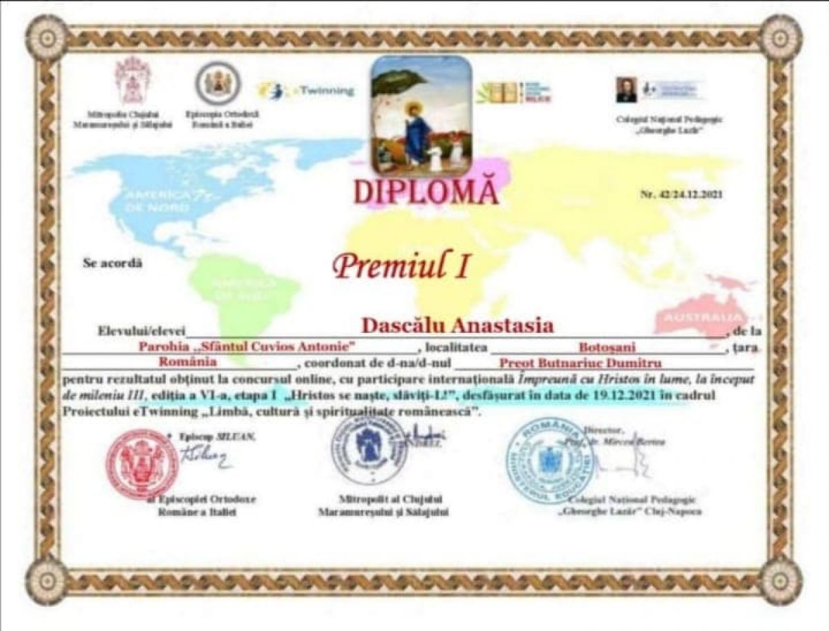 ”Premierea s-a desfăşurat concomitent în toate ţările participante la data de 30 ianuarie 2022 cu ocazia cinstirii Sfinţilor Trei Ierarhi, imediat după Sfânta Liturghie. Aprecierea pentru această implicare a copiilor merită să fie făcută în faţa părinţilor, a dascălilor şi a întregii comunităţi eclesiale”,