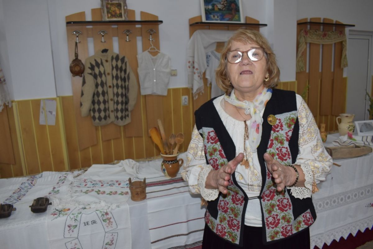 Obiectele strânse provin de la soacra fostei învățătoare, o femeie meșteșugar cu mâini de aur, dar și de la bunica maternă. Și nu în ultimul rând de la propria mamă, care de-a lungul anilor i-a cununat pe fiii satului pentru care a cusut manual tot felul de prosoape care erau oferite mirilor și nașilor.