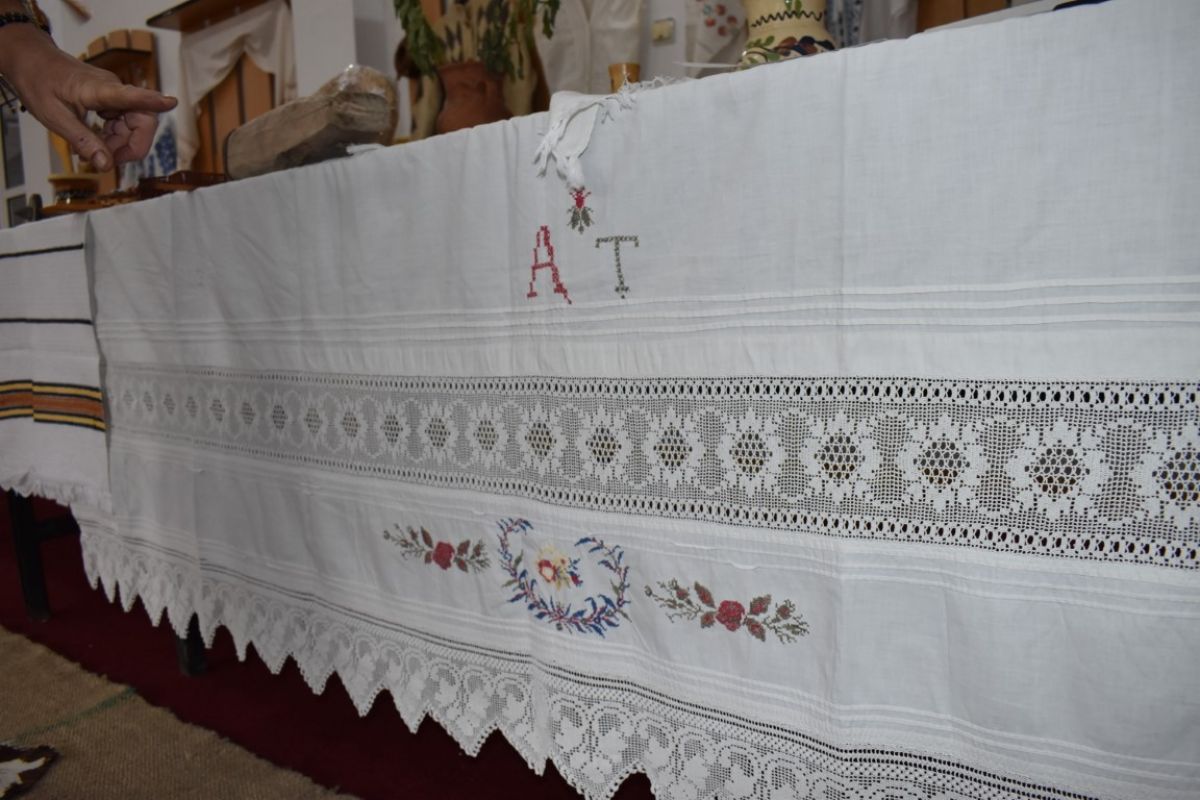 Rodica Pîrlog a prezentat din colecția sa o „prostire” utilizată în trecut pe post de cearceaf pentru acoperirea zestrei miresei care a fost lucrată în urmă cu 120 de ani: „Aparține Aristiței Țapu, bunica mea din partea mamei, când era ea domnișoară. Dacă fetele din vremea aceea nu aveau zestrea destul de mare în casa mare, nu erau apreciate, nu erau întrebate de flăcăi”.