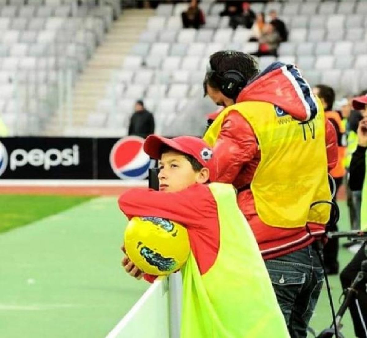 Așa se poate observa și din fotografia-document în care actualul jucător al vicecampioanei Ligii 1 era copil de mingi, la vârsta de 13 ani, la un meci pe ”Cluj Arena”.