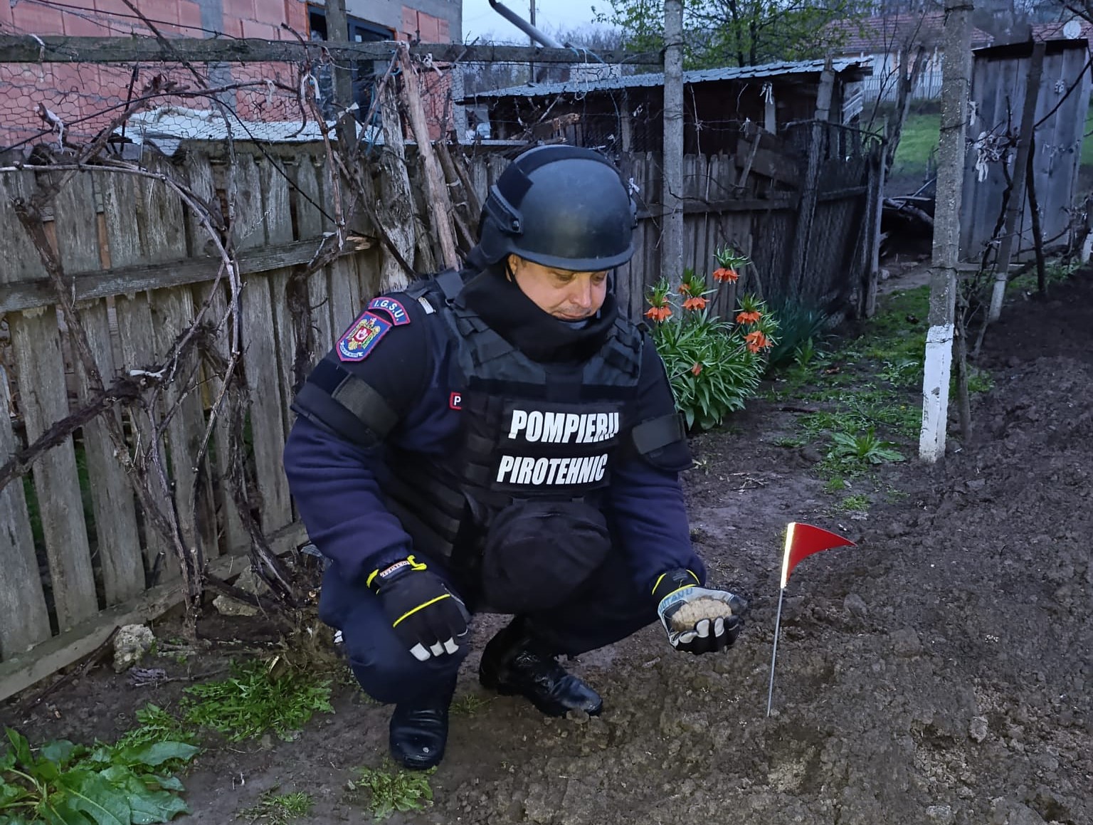 Proprietarul a anunțat imediat autoritățile, iar echipa pirotehnică a ISU Botoșani a intervenit de urgență. Pirotehnicienii au constatat faptul că grenada de mână defensivă, rămasă neexplodată din timpul conflictelor armate, reprezenta un real pericol, putând exploda la cel mai mic impact mecanic.
