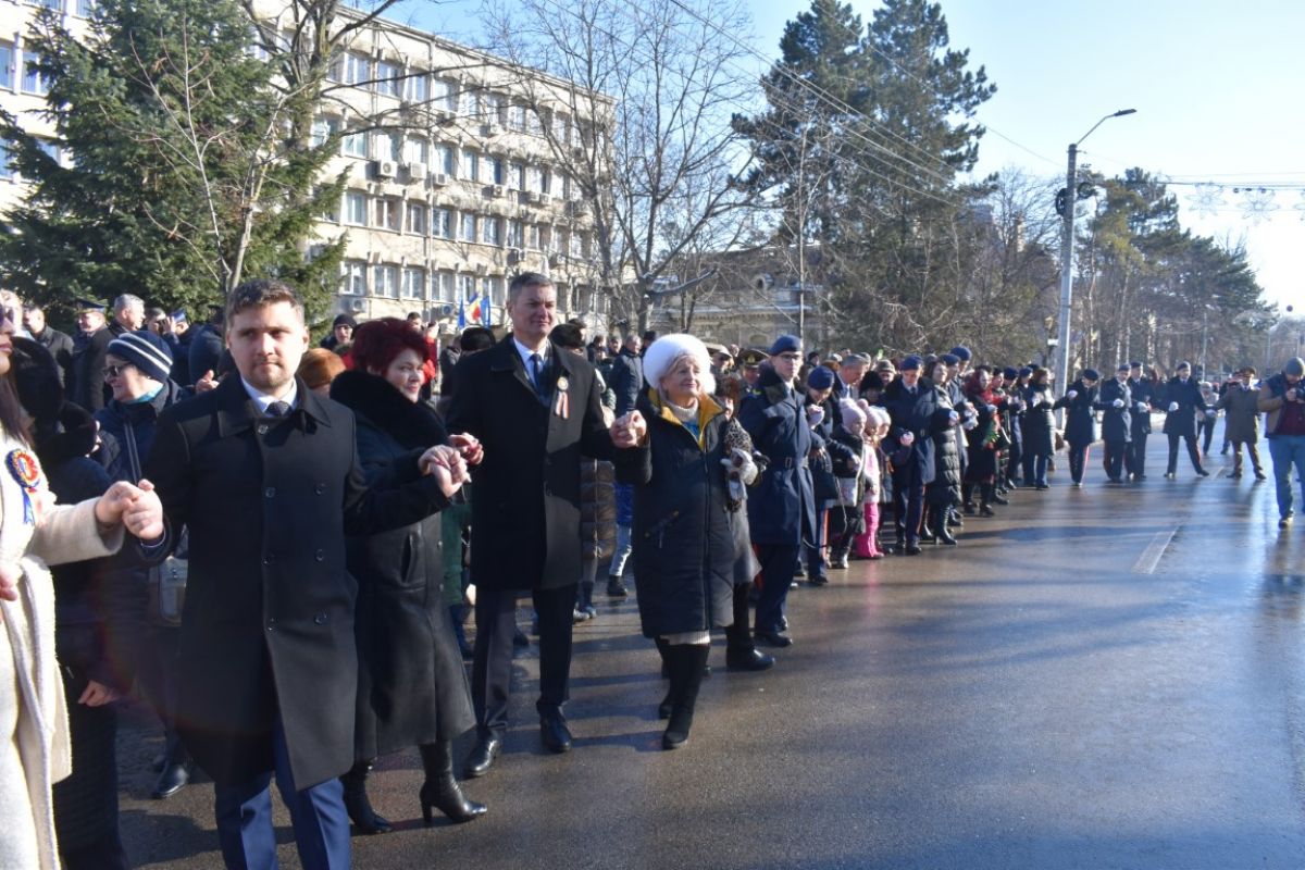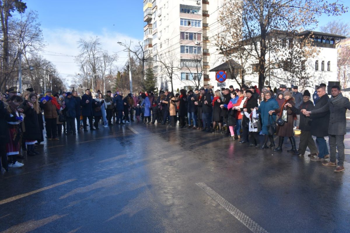 Hora Unirii a succedat defilarea militară și în primă fază botoșănenii au fost reticenți în a se prinde de mâini pentru a marca ziua de 24 ianuarie.