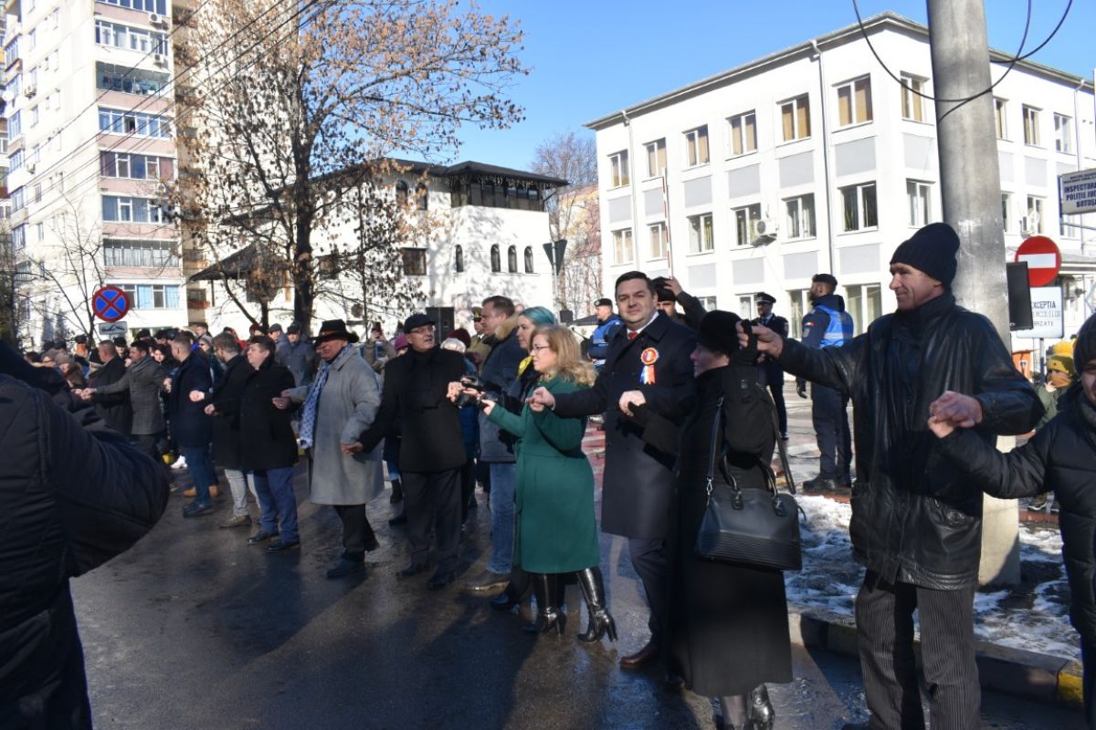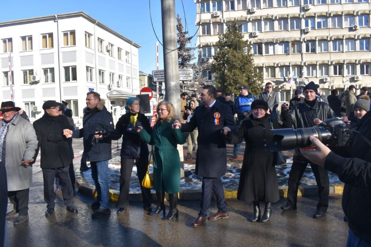 Evenimentul organizat în fața sediului Poliției Botoșani miercuri la amiază s-a terminat cu Hora Unirii.