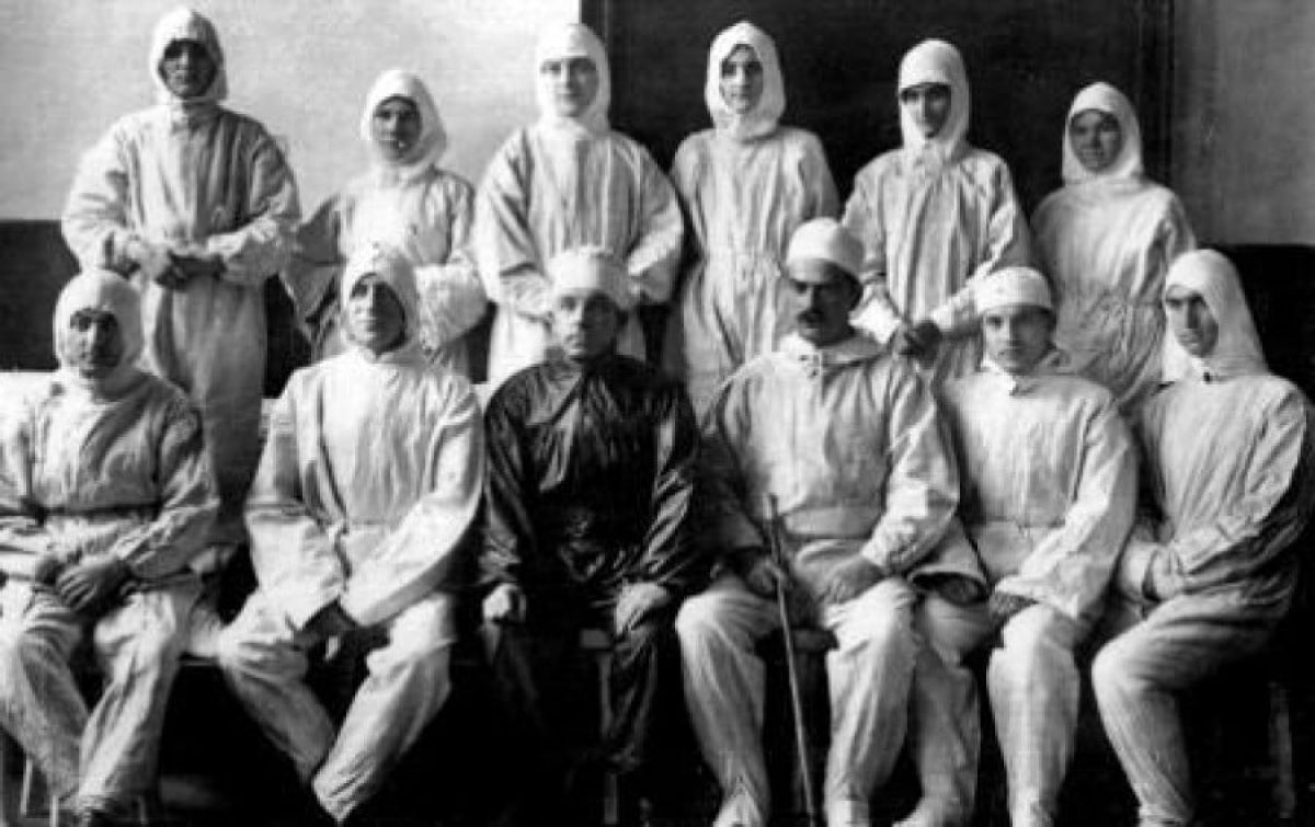 Imaginea este din Spitalul pentru tratarea tifosului exantematic de la Dorohoi. În imagine apar medici francezi și români, dar și infirmiere.