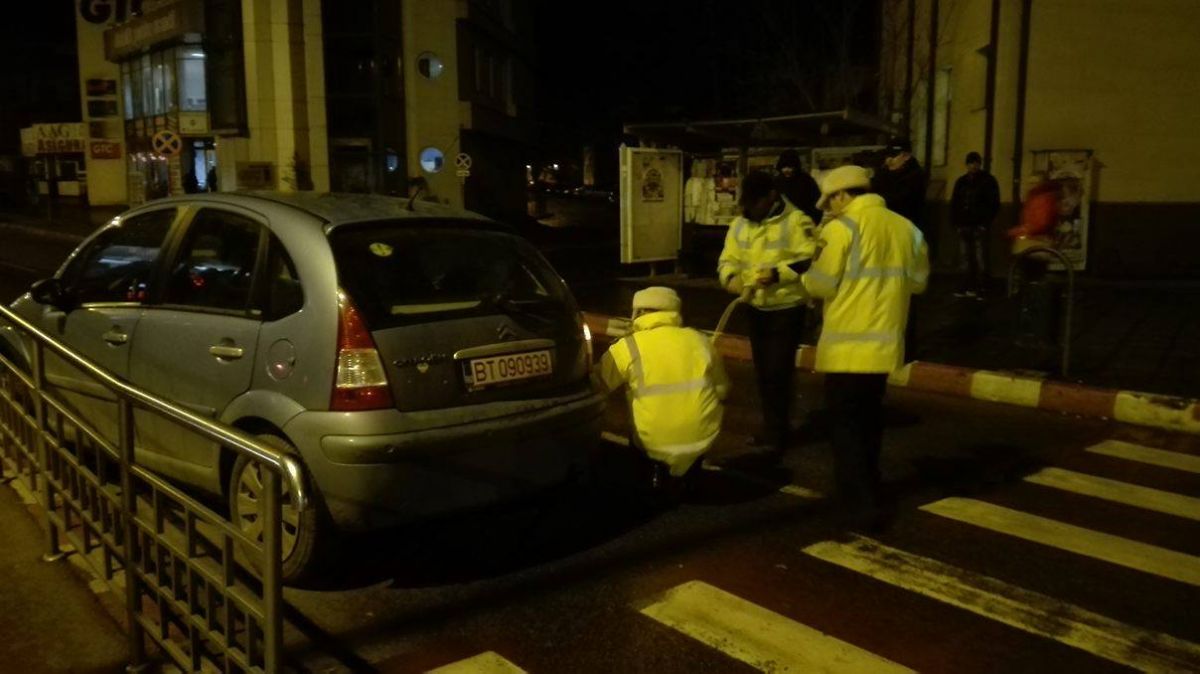 Accident în centrul oraşului, lângă sediul Serviciului Public Comunitar Regim Permise Conducere şi Înmatriculare a Vehiculelor, unde o femeie a fost lovită de o maşină.