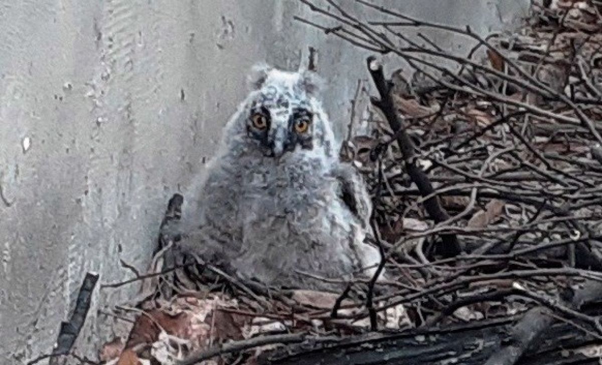 Am aflat că e ciuf de pădure, numele vine de la ciuful înalt care le maschează fiecare ureche. E sezonul în care învaţă să zboare şi cad din cuiburi.