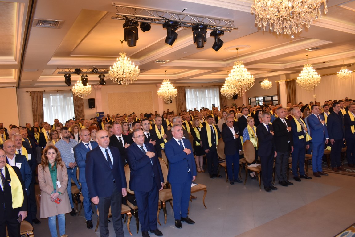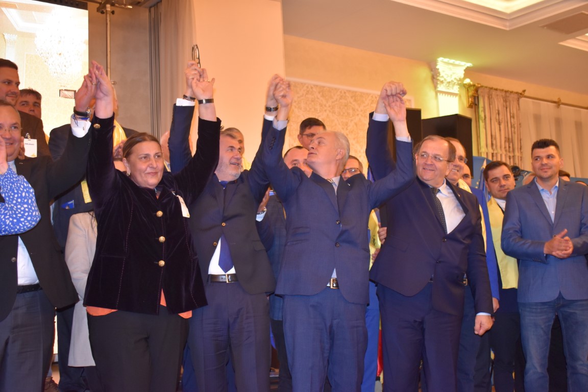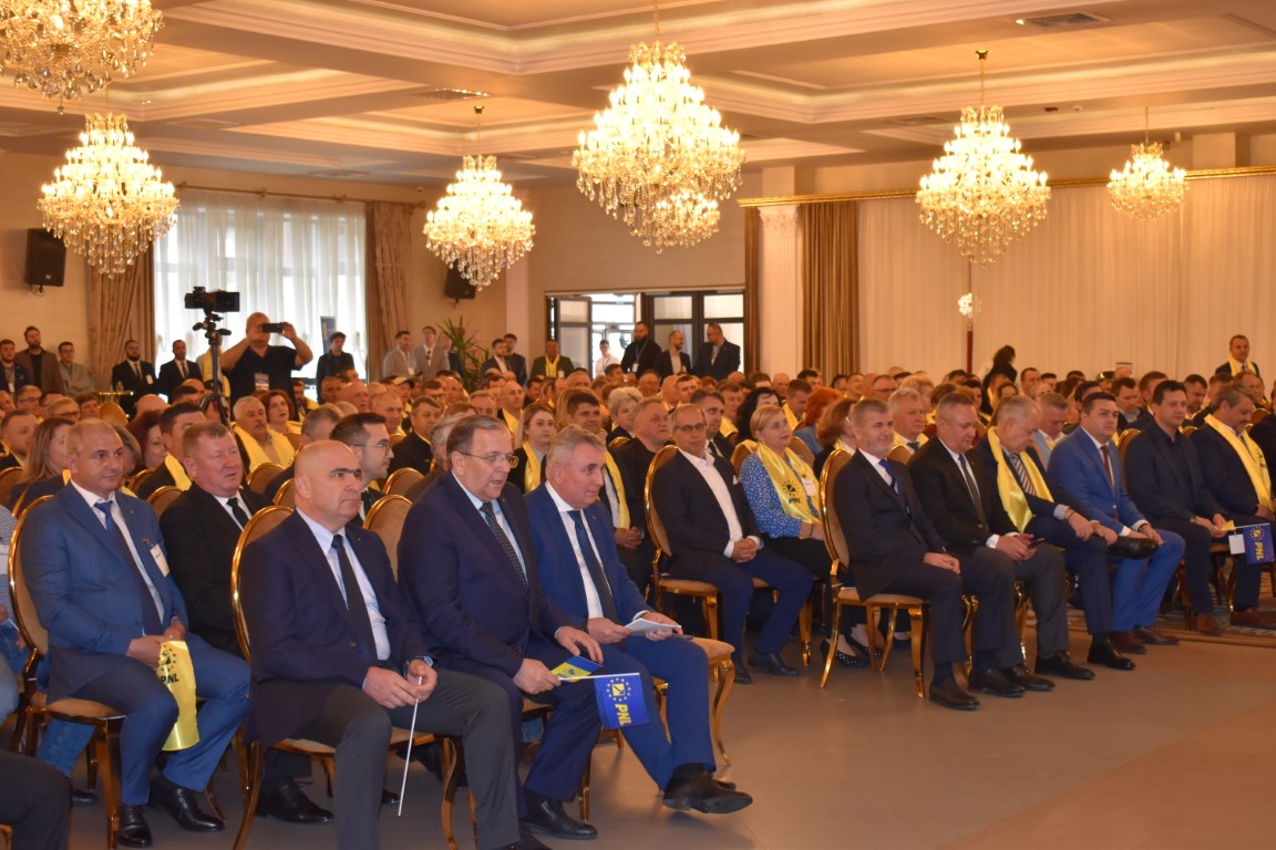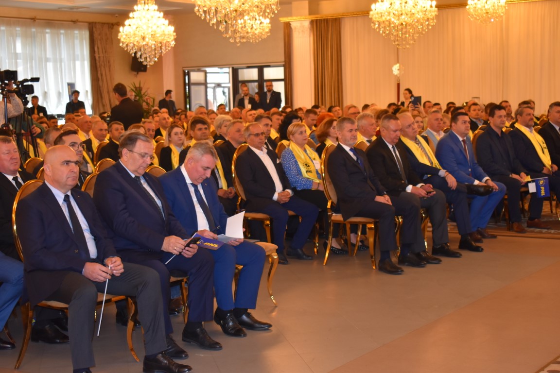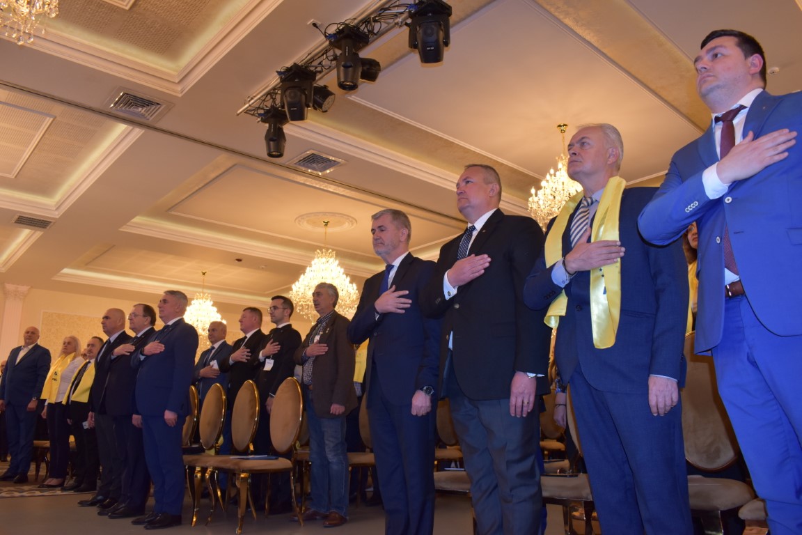 Sala era animată în culorile partidului galben – albastru. Totemurile cu fotografia de campanie a lui Valeriu Iftime, în culoare albastră erau așezate strategic în toată sala dar și la intrare.