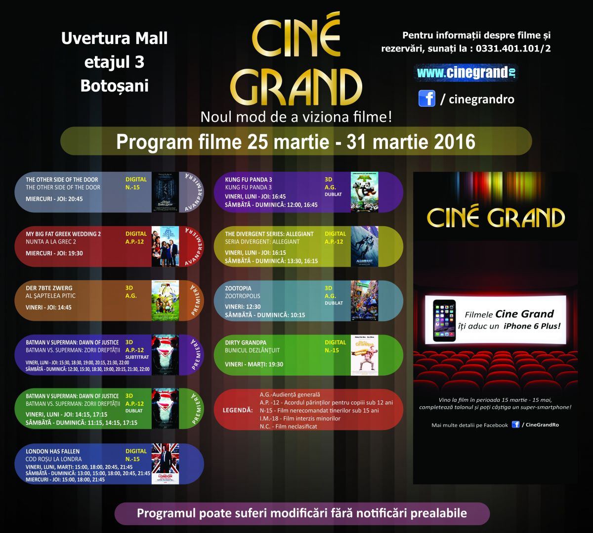 Cel de-al doilea film care poate fi urmărit la Cine Grand este My Big Fat Greek Wedding 2 (Nuntă a la grec 2), cu actorii Nia Vardalos, Michael Constantine, Lainie Kazan, John Corbett, Elena Kampouris.
