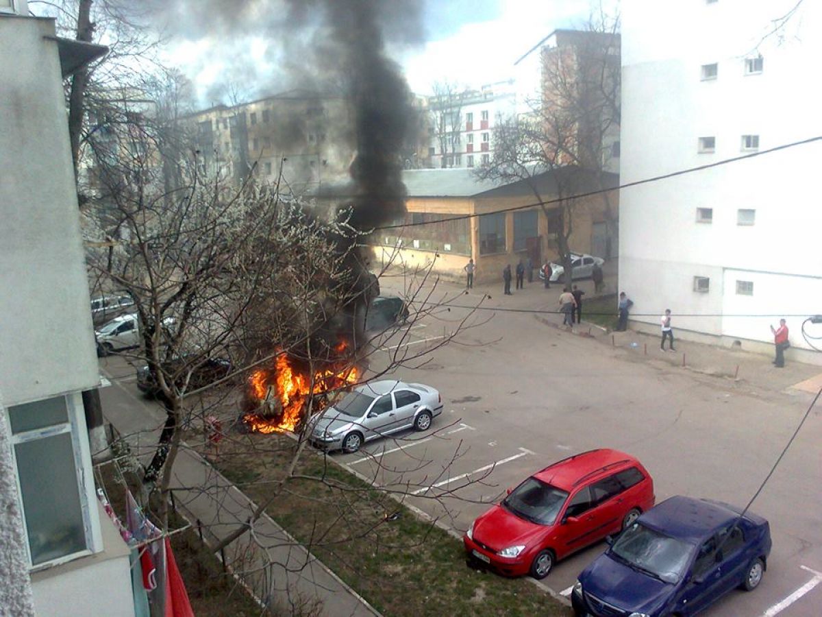 Este vorba despre o mașină marca Ford Focus care a fost parcată în fața unui bloc de pe aleea Parcului, din municipiul Botoșani. La un moment dat, din motive încă necunoscute, autoturismul a luat foc și a ars în totalitate. Pompierii au ajuns imediat la fața locului cu o autospecială cu apă și spumă și s-au luptat să stingă focul, care amenința să se extindă la un alt autoturism parcat chiar lângă mașina cuprinsă de flăcări. De altfel, a ars portiera din partea dreapta a celuilalt autoturism, un VW Bora.
