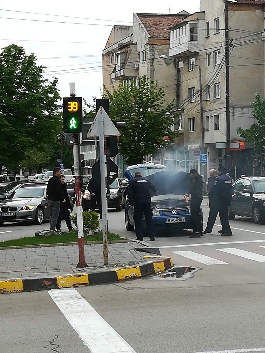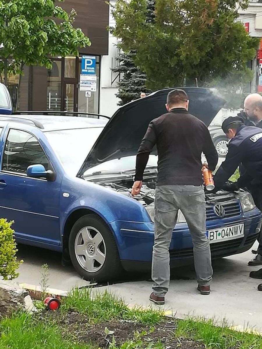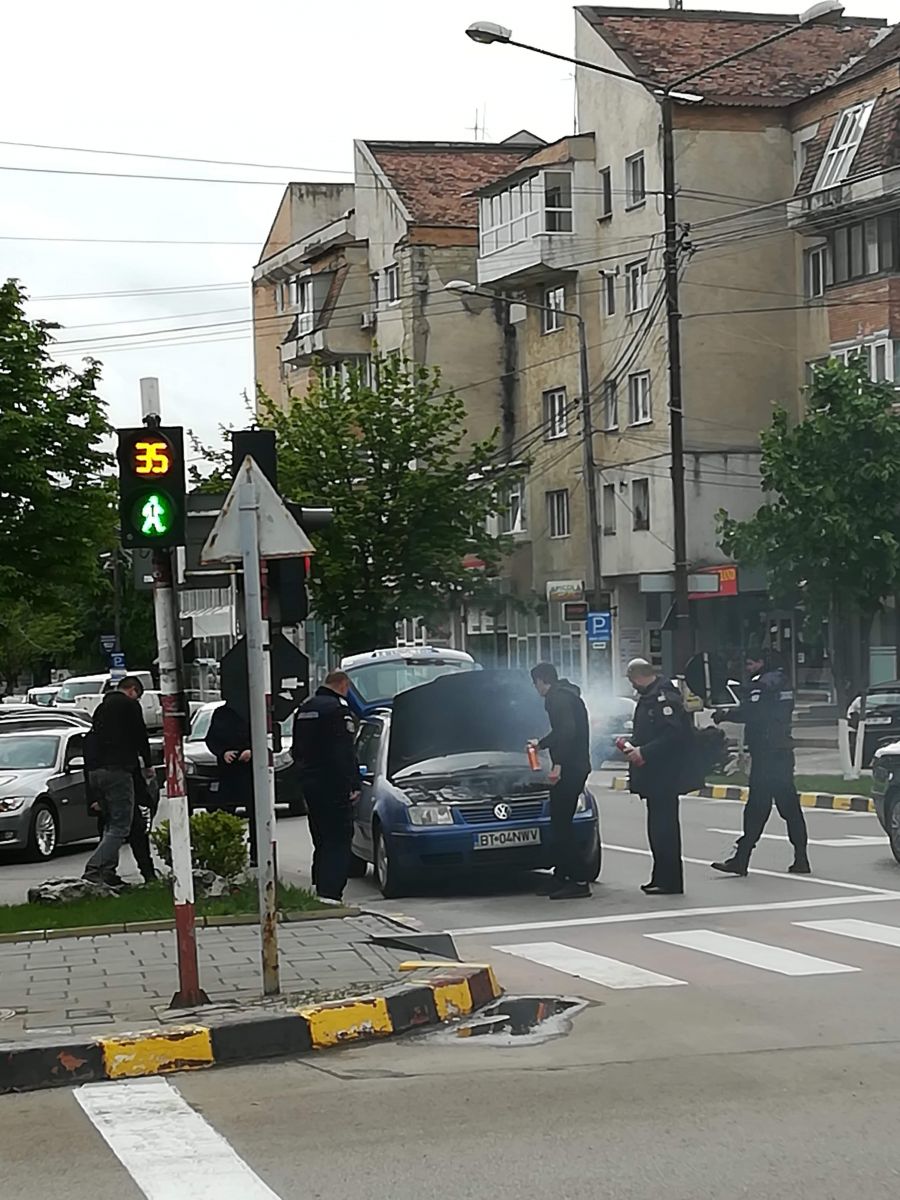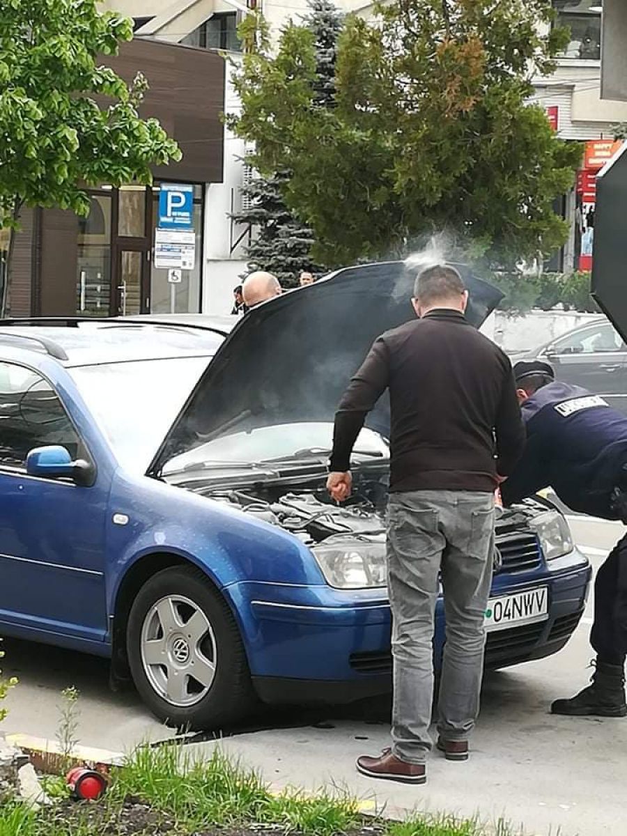 Flăcările au fost observate sub capota mașinii. Șoferul a oprit de urgență și a încercat să stingă focul. L-au ajutat și mai mulți jandarmi care se aflau în apropiere, astfel că nu a mai fost nevoie să se solicite ajutorul pompierilor.