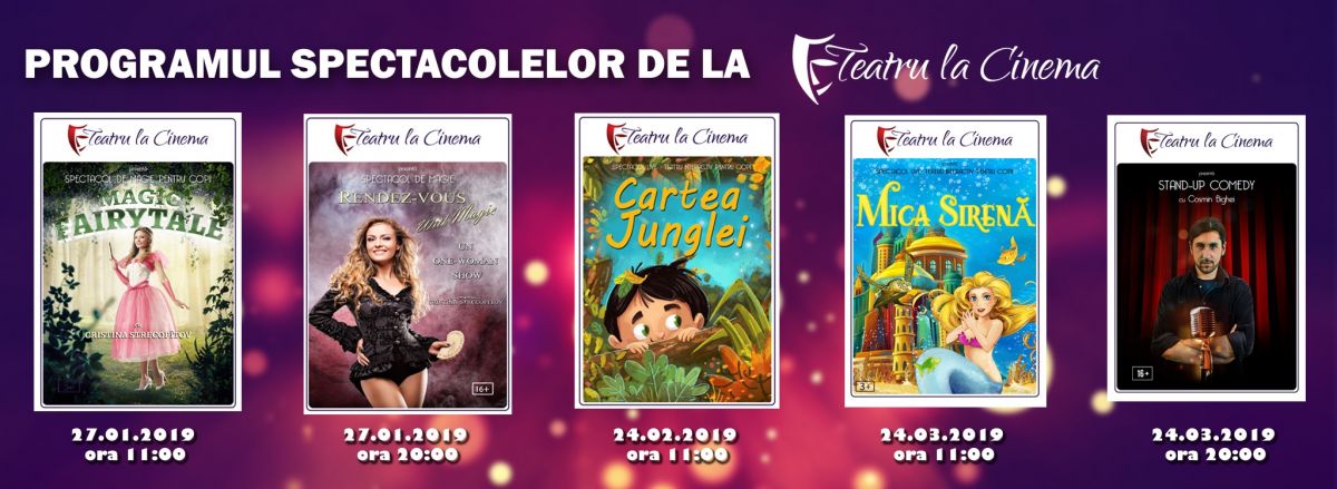 Programul spectacolelor de la Cine Globe vor fi atât pe placul celor mici, cât și pe cel al celor mari, aceasta pentru că din cele cinci spectacole din această stagiune, trei dintre ele (“Magic Fairytale”, “CarteaJunglei”, “Mica sirenă”) sunt pentru copii, iarcelelalte două (un spectacol de magie cu Cristina Strecopitovșiunul de stand-up cu Cosmin Bighei, cunoscut de la emisiunile“iUmor”și“Românii au talent”) sunt pentru adulți. Spectacolul de debut “Magic Fairytale” îi va provoca pe micii spectatori să urce pe scenă și să devină adevărați magicieni. Având ca ajutor o baghetă fermecată, ei vor învăța trucuri hazlii și formule magice ce vor transforma fanteziile în realitate!