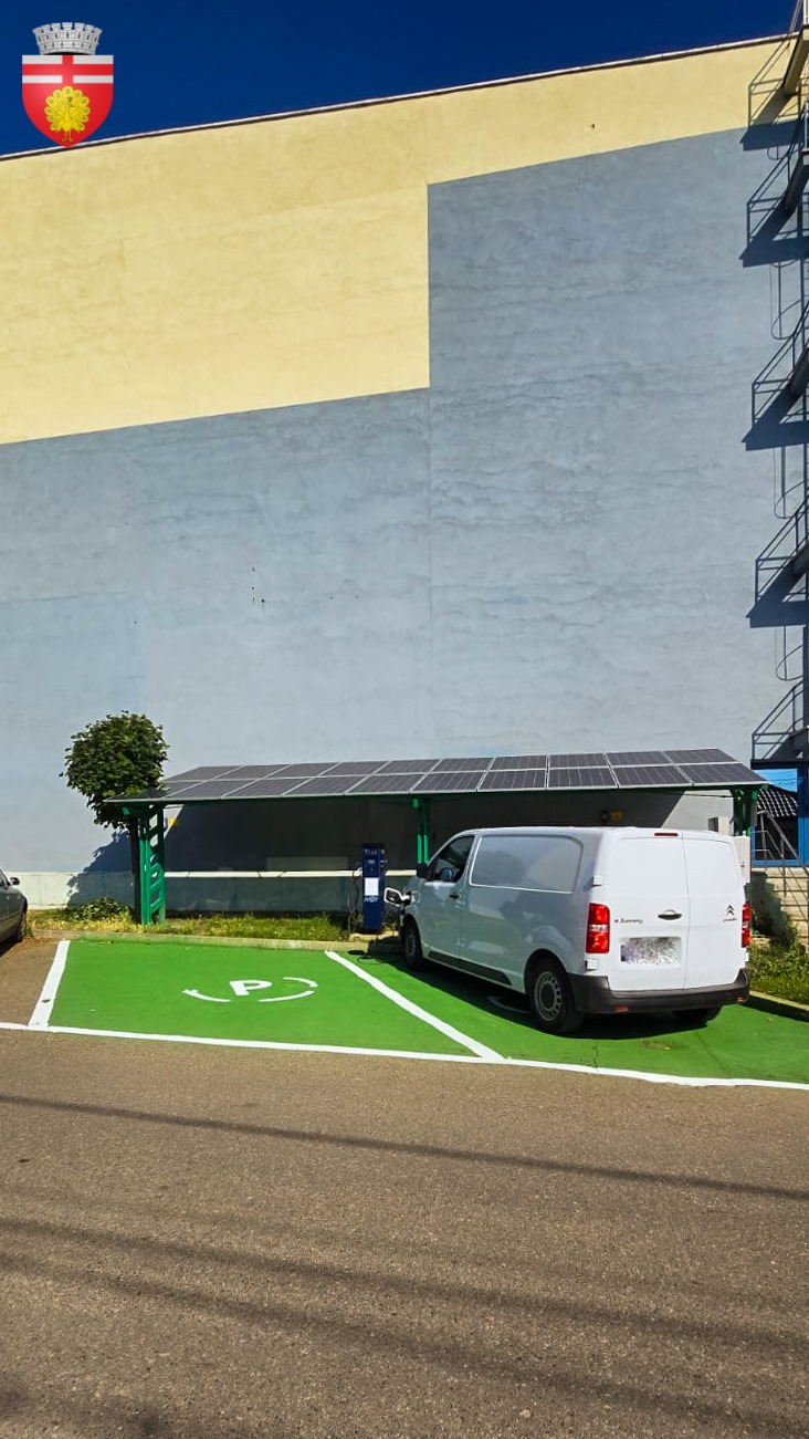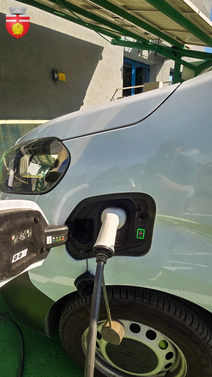 Stația este prevăzută cu două porturi de încărcare cu puterea de 22 Kw, alimentate atât din rețea dar, în principal, dintr-un sistem fotovoltaic compus din 20 de panouri cu puterea de 270 w fiecare, invertor solar și structură metalică amplasată la sol.