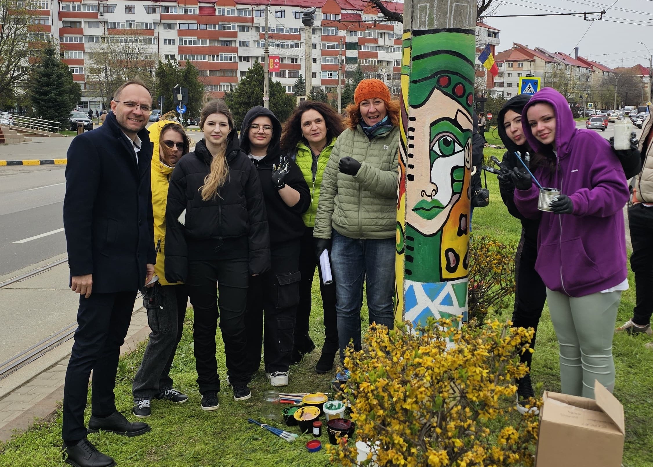 Elevi de la 20 de unități de învățământ au pictat stâlpii de pe Calea Națională. Fiecare școală și-a ales propria tematică de desen, pornită de la nivel de schiță și transpusă de stâlpi.