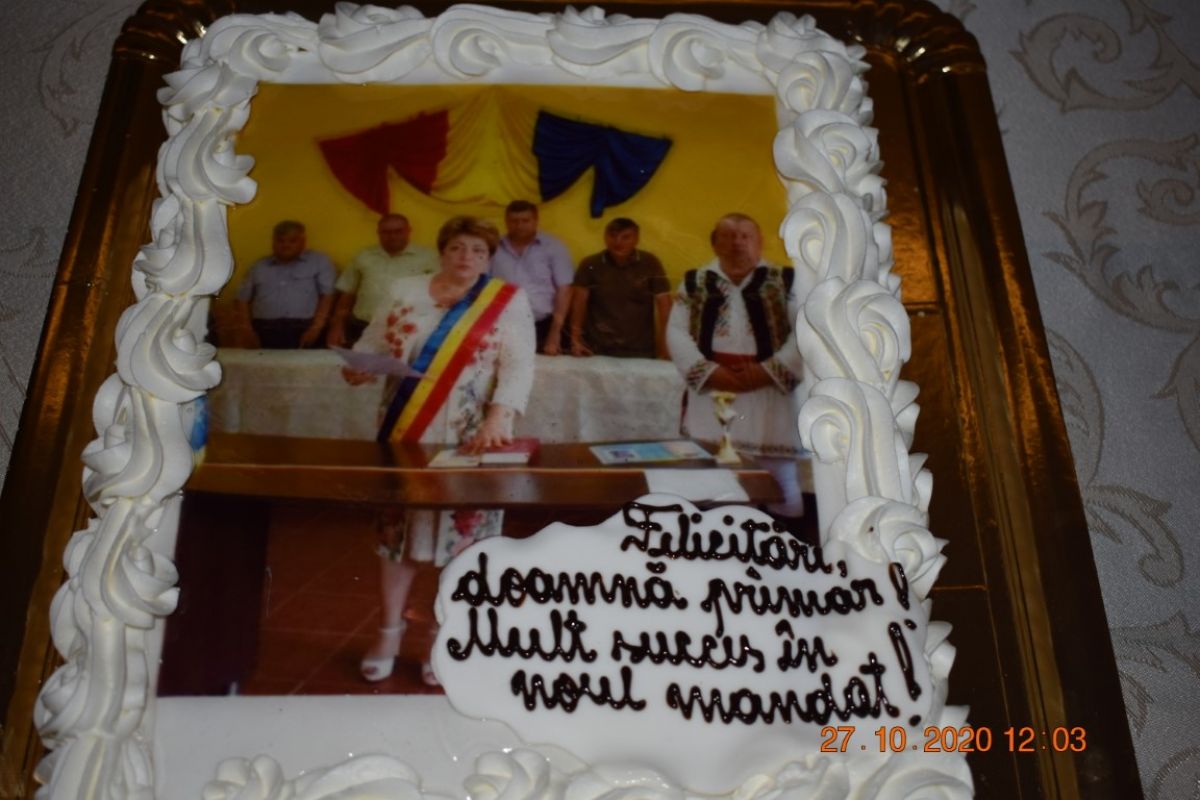 După ceremonie, primarul Elena Vrajotis a primit din partea colegilor un tort cu fotografia sa și cu mesajul: ”felicitări doamna primar, mult succes în noul mandat”.