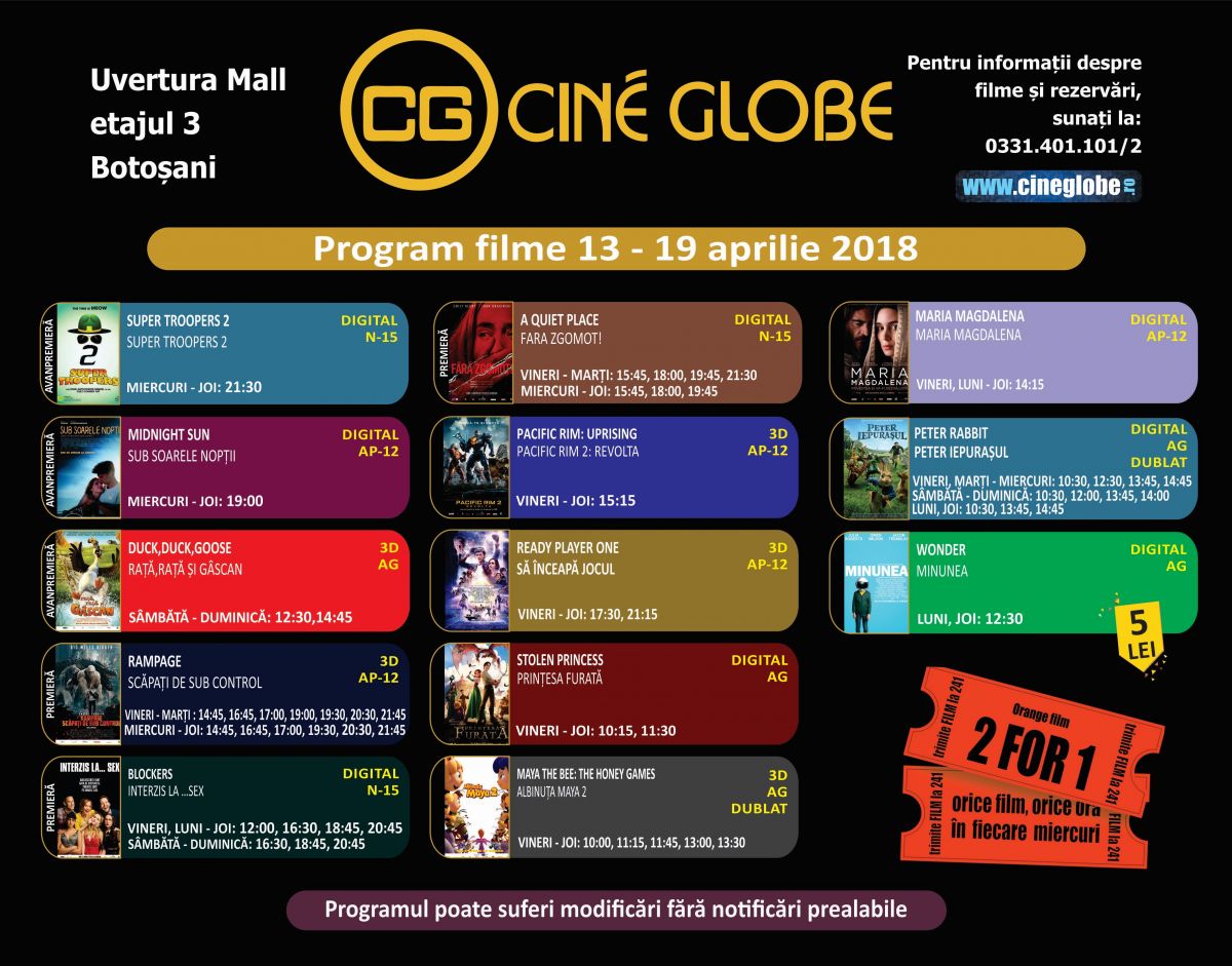 Astfel cinefilii botoşăneni pot vedea în avanpremieră comedia Super Troopers 2 (2018) în regia lui Jay Chandrasekhar, cu actorii în rol principal Emmanuelle Chriqui, Rob Lowe, Lynda Carter, Brian Cox, Tyler Labine, Will Sasso, Marisa Coughla.