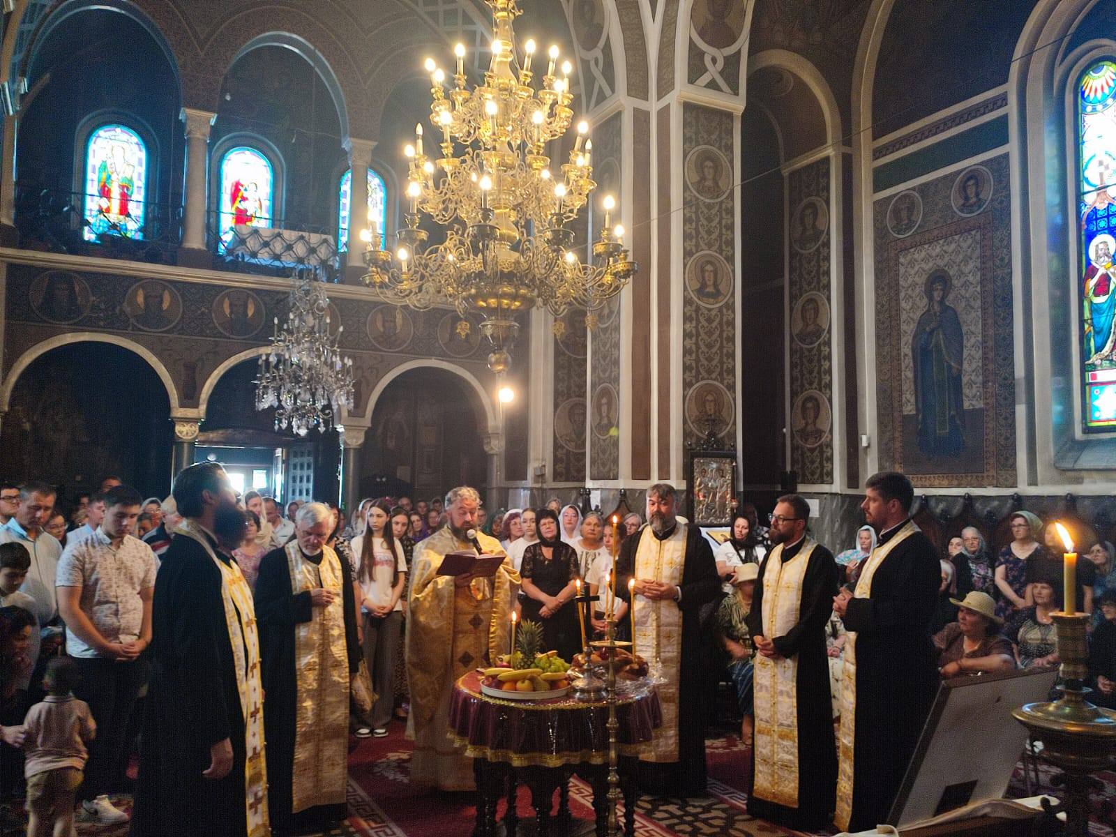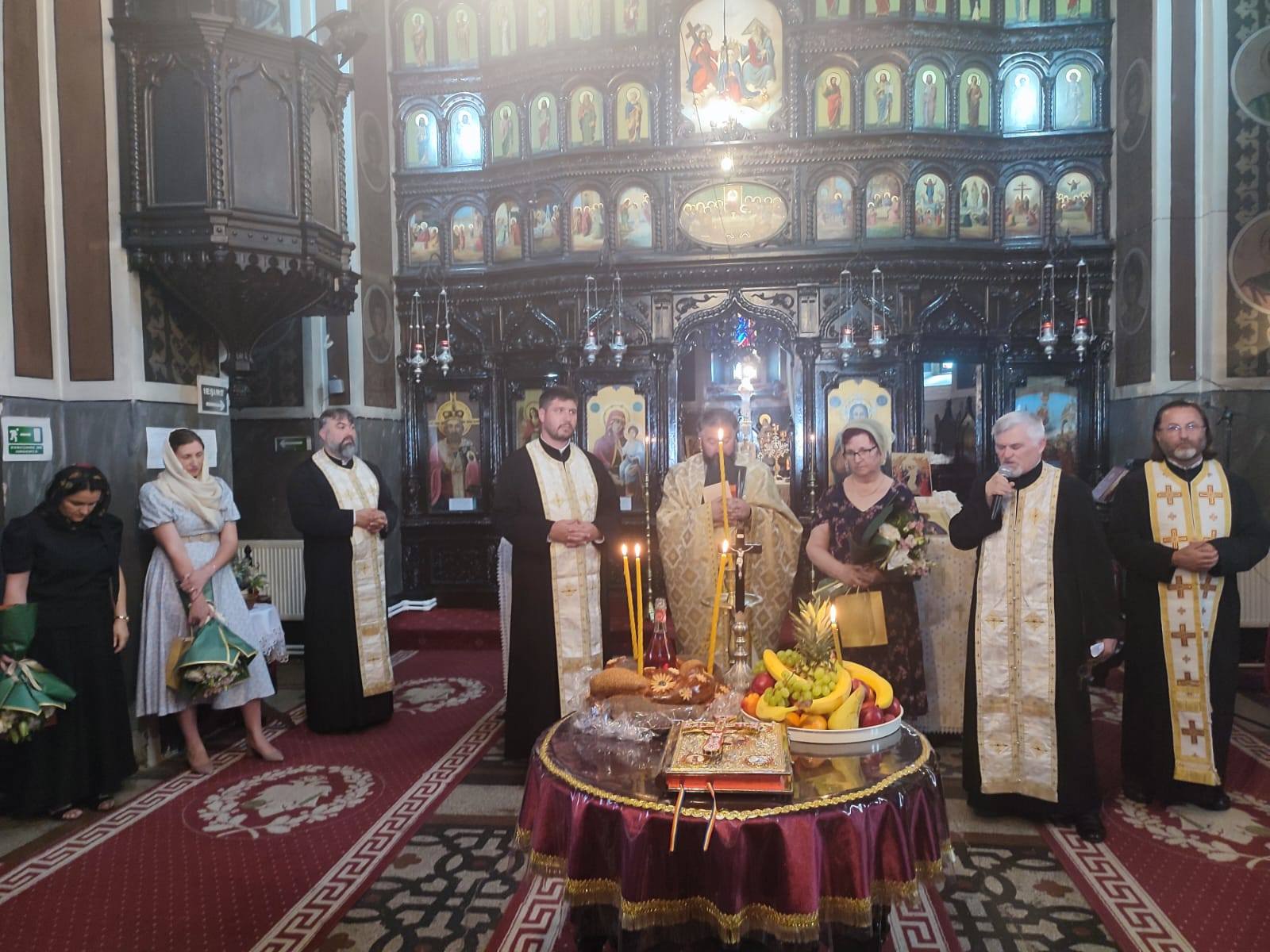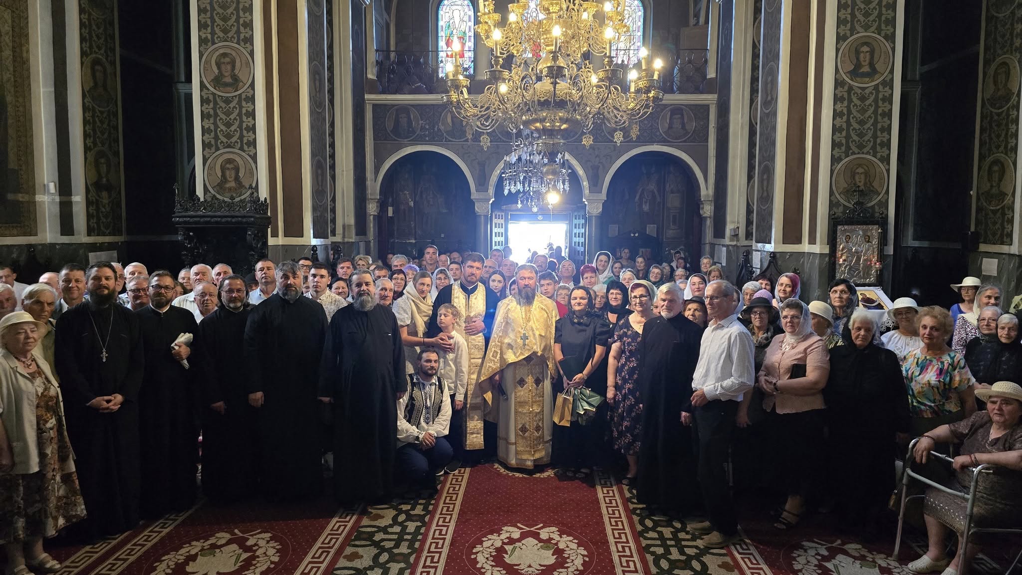 Slujba de Te Deum a fost săvârșită de un sobor de preoți condus de părintele protopop Ionuț Ștefan Apetrei. În cuvântul său, părintele protopop a subliniat continuitatea slujirii și a mulțumit Părintelui Gheorghe Șoptică pentru întreaga activitate desfășurată: