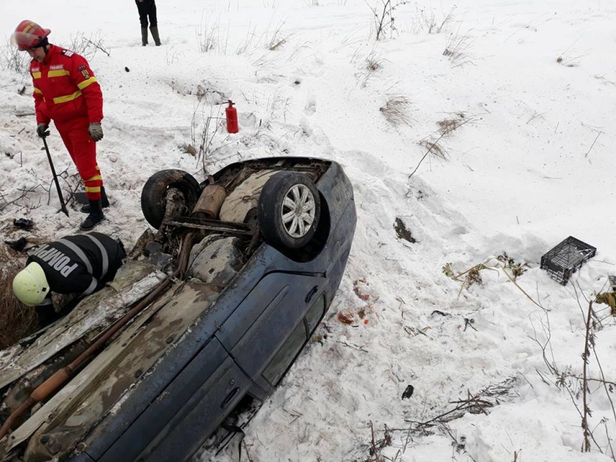 Duminică dimineață, la ora 5.00, în timp ce conducea autoturismul într-o curbă pe DN 29A, din comuna Adâncata, o femeie de 24 de ani, din judeţul Botoşani, a pierdut controlul asupra direcţiei de mers şi s-a răsturnat în afara părţii carosabile.