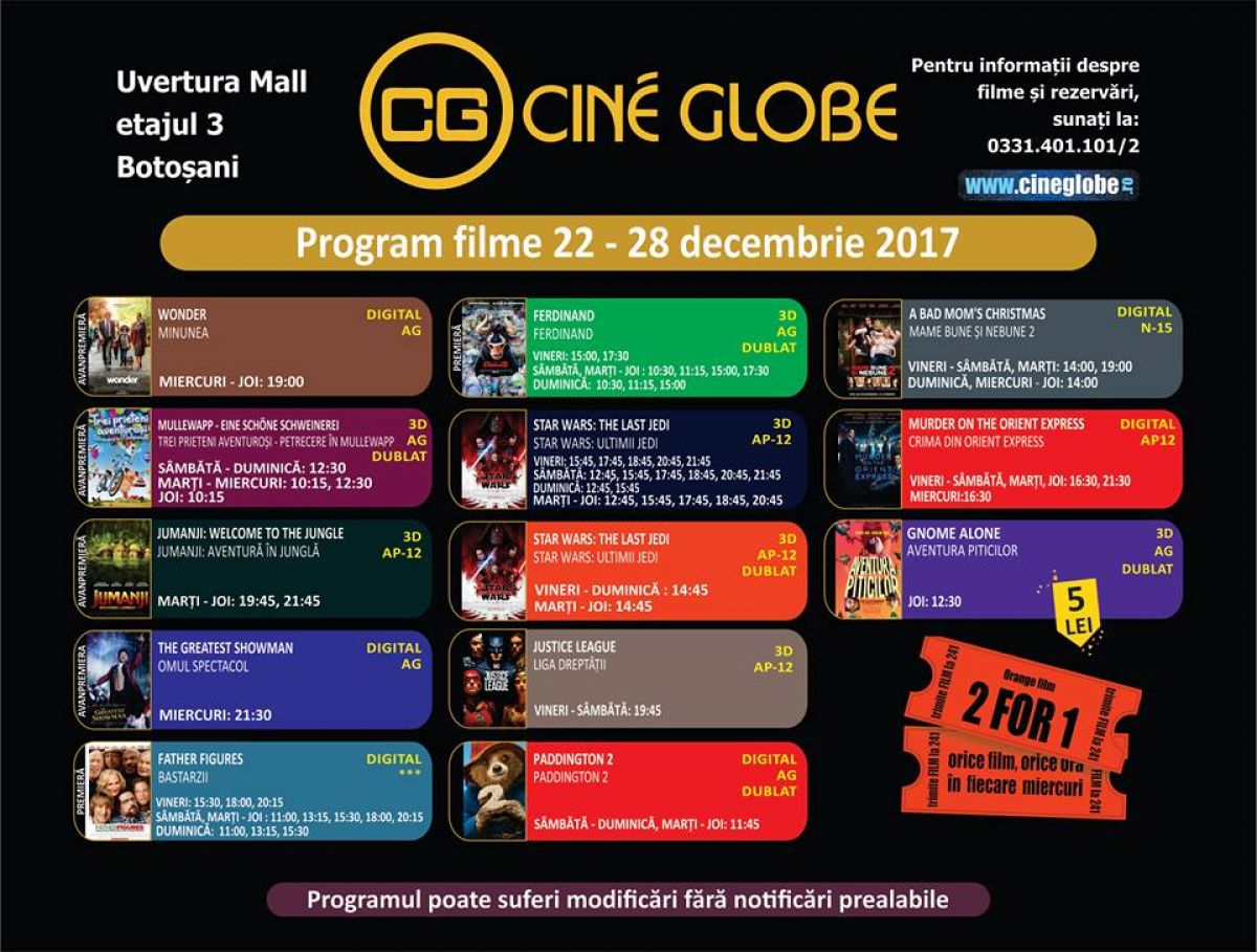 De asemenea botoşănenii care vor să se delecteze cu un film mai pot vedea în avapremieră: Trei prieteni aventuroşi – Petrecere în Mullewapp, Jumanji – Aventură în junglă şi Omul Spectacol