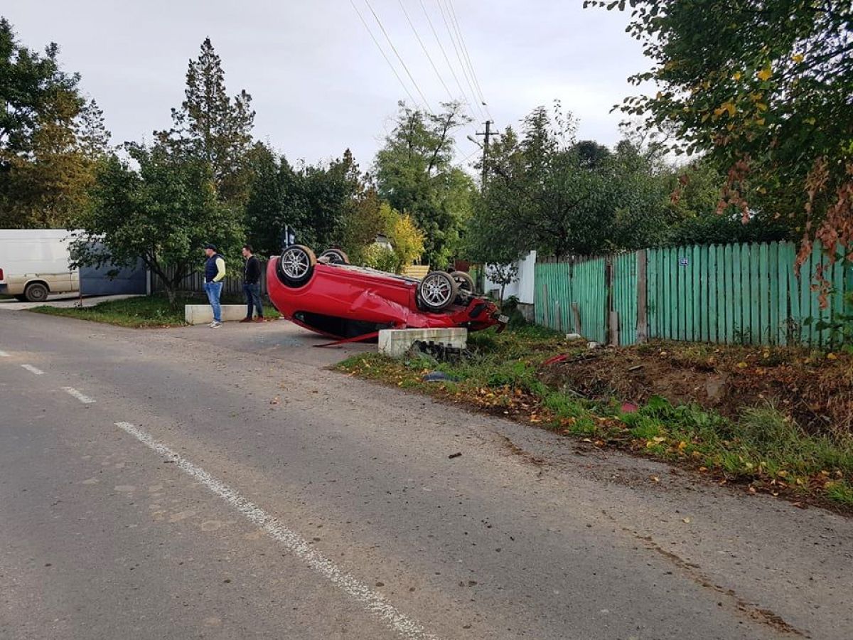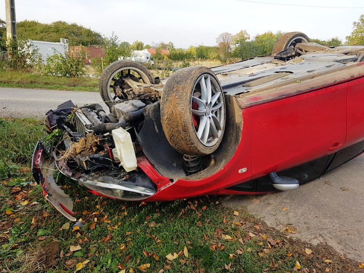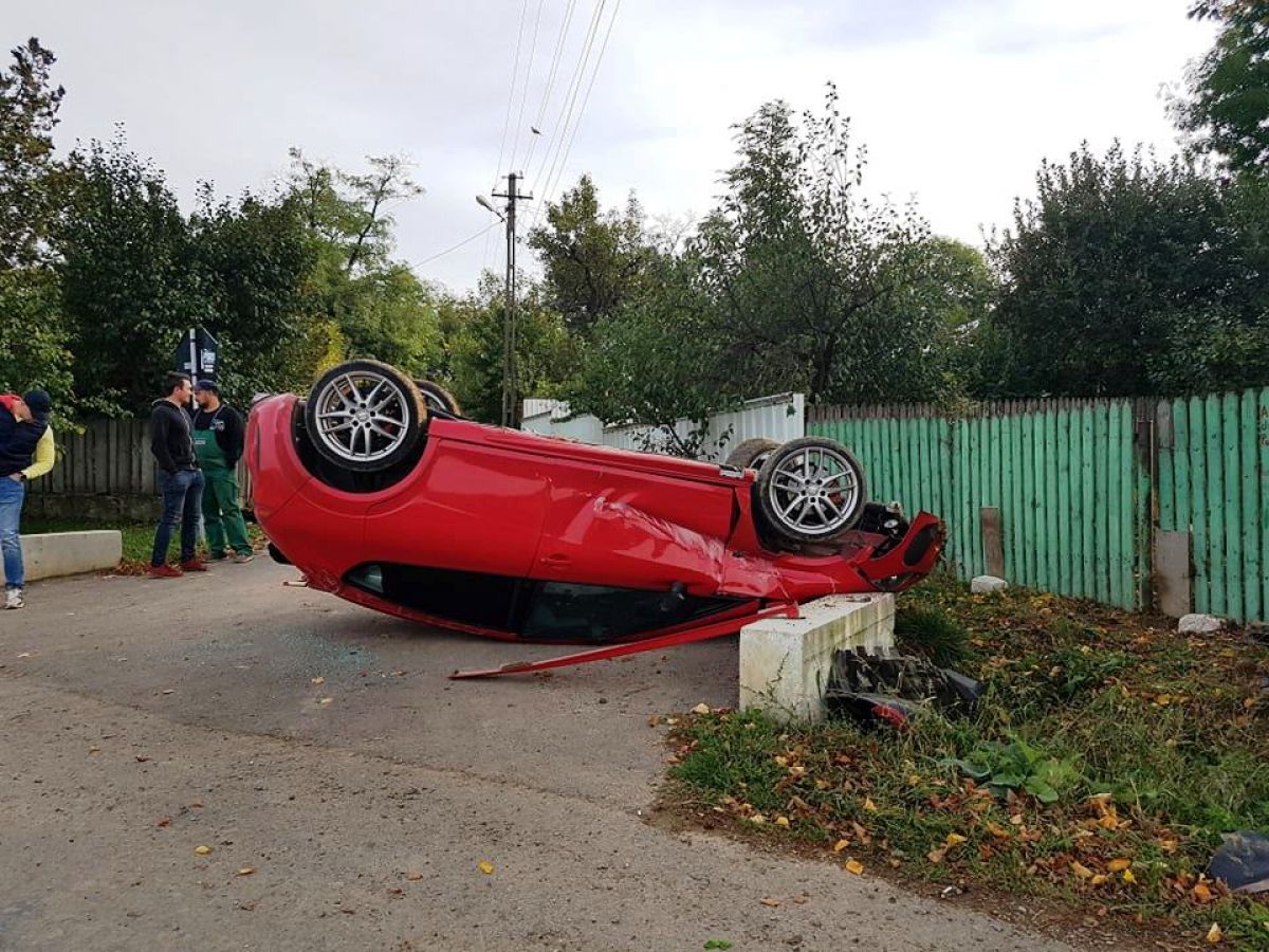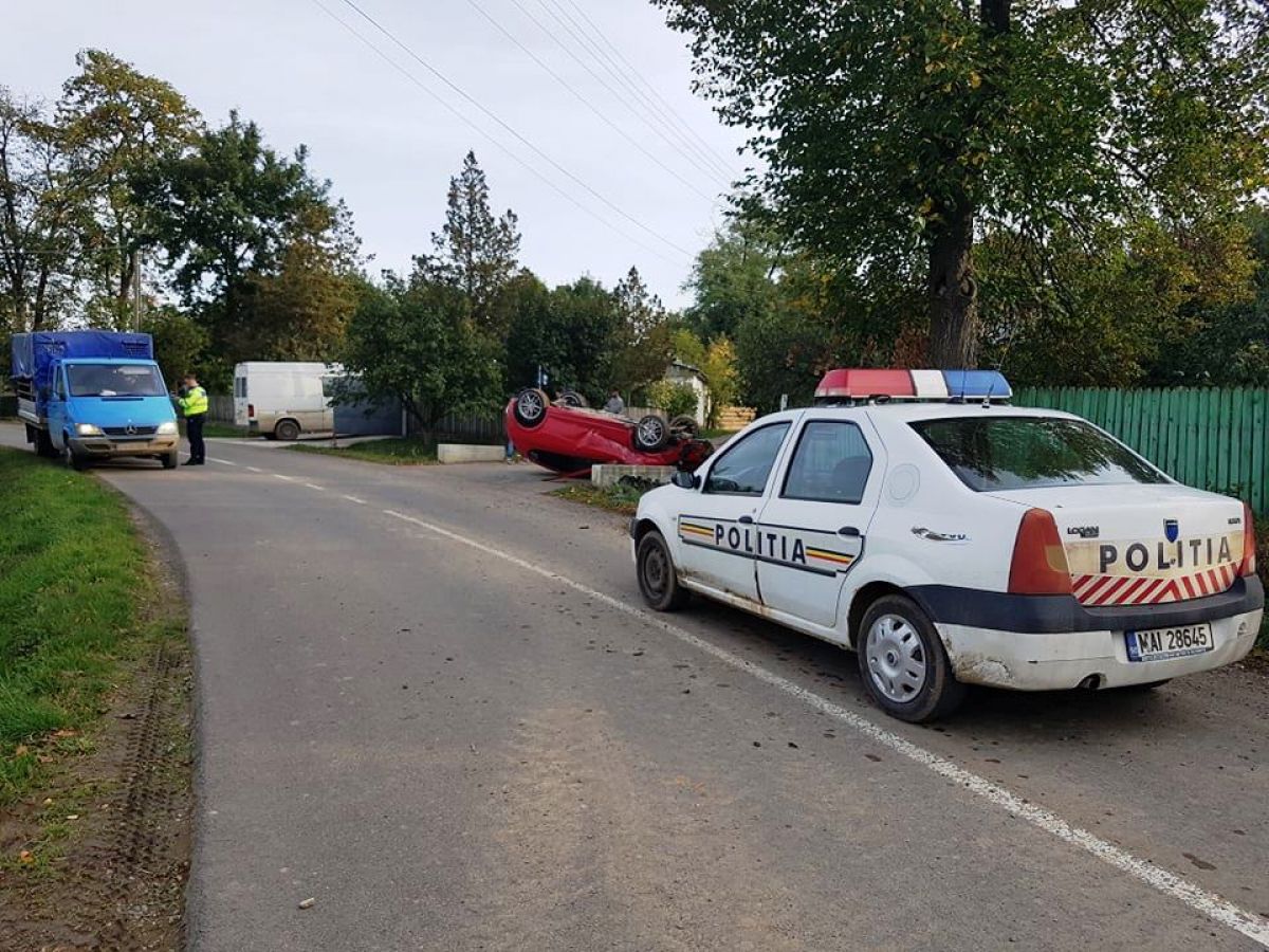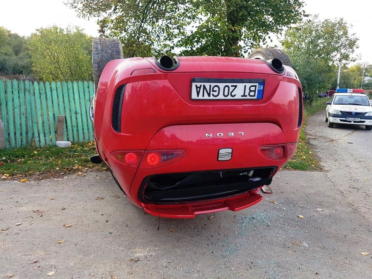 O conducătoare auto în vârstă de numai 19 ani s-a răsturnat cu automobilul, un Seat Leon, într-o curbă.