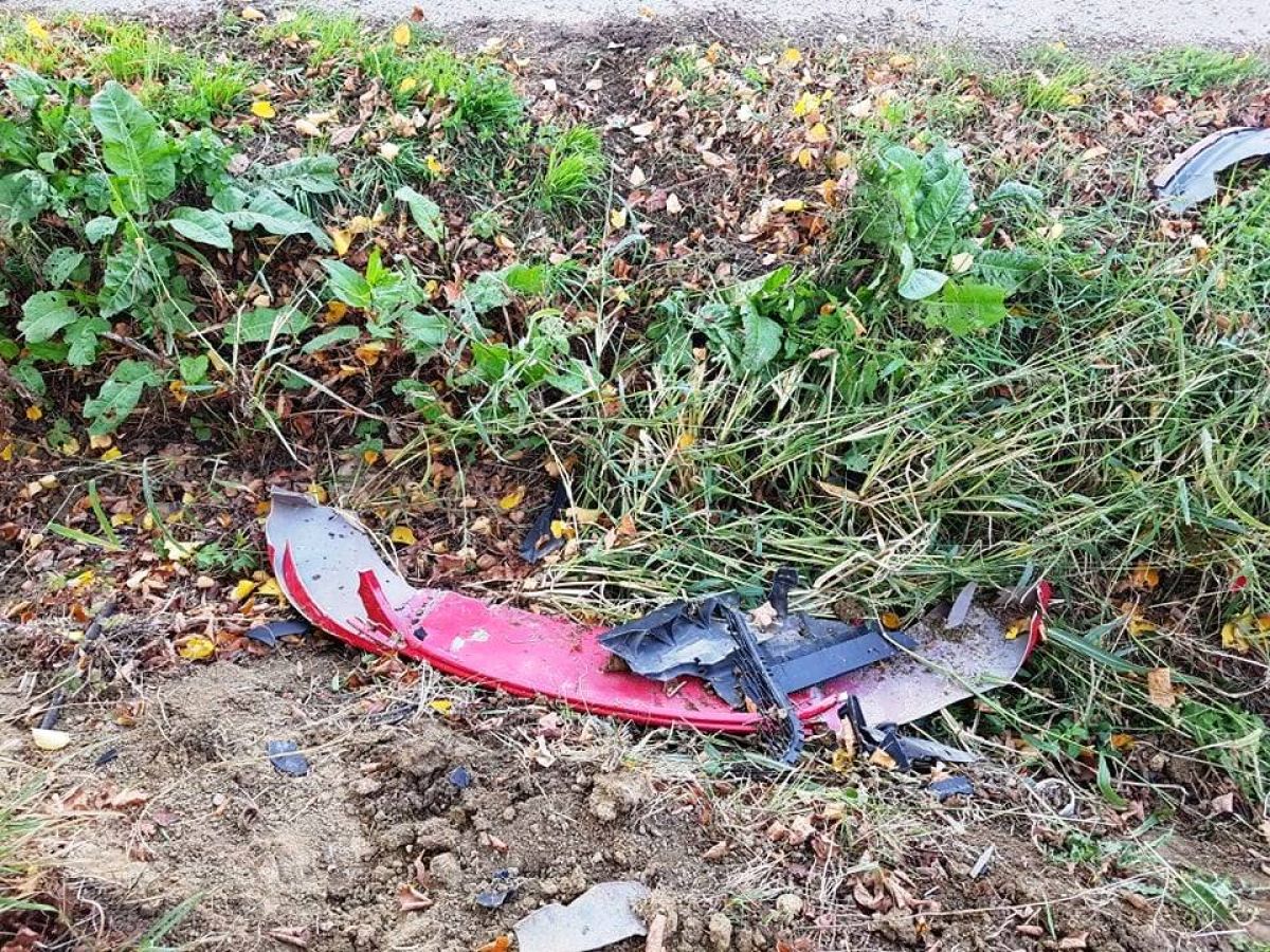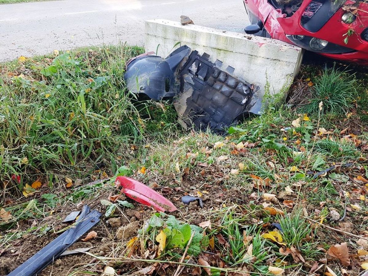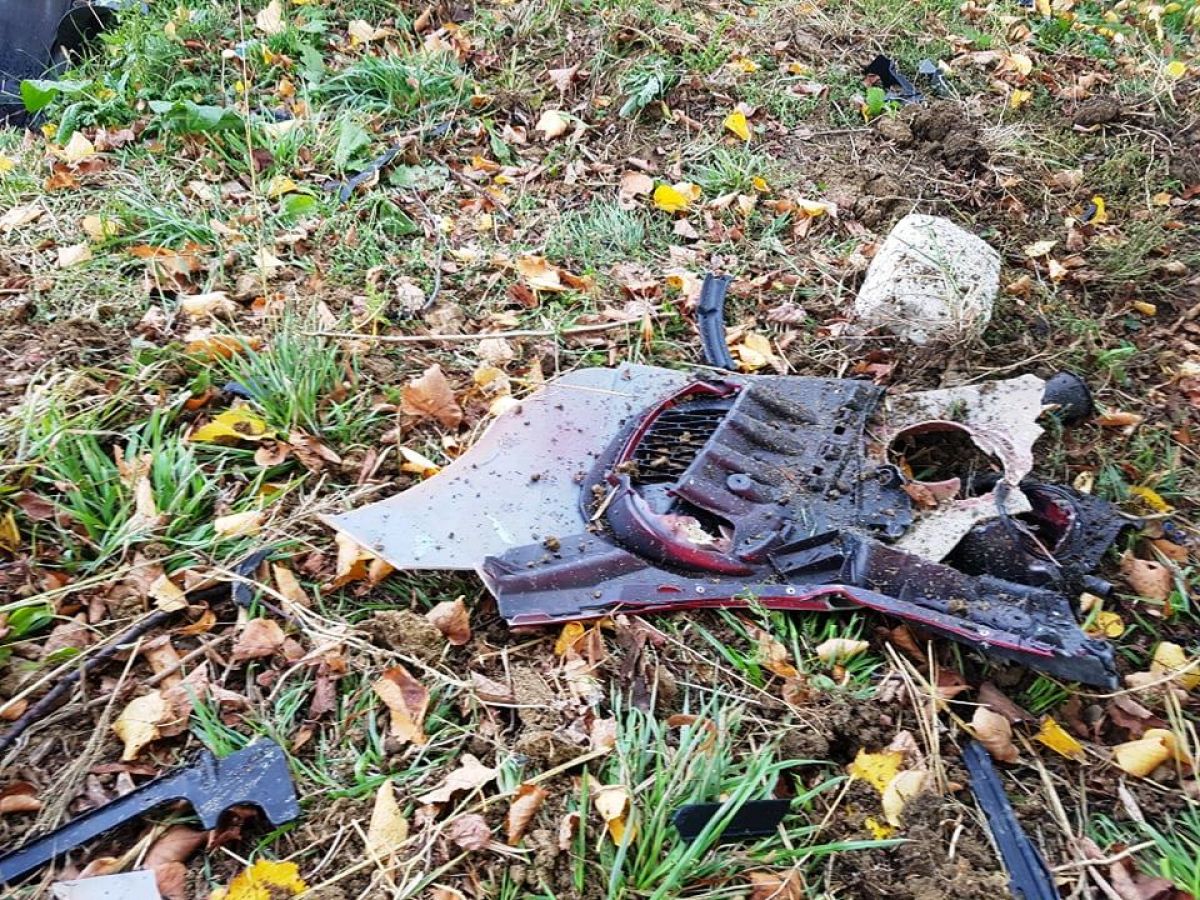 Mai multe bucăți de caroserie erau sărite pe o rază de câțiva metri, iar luneta era spartă.