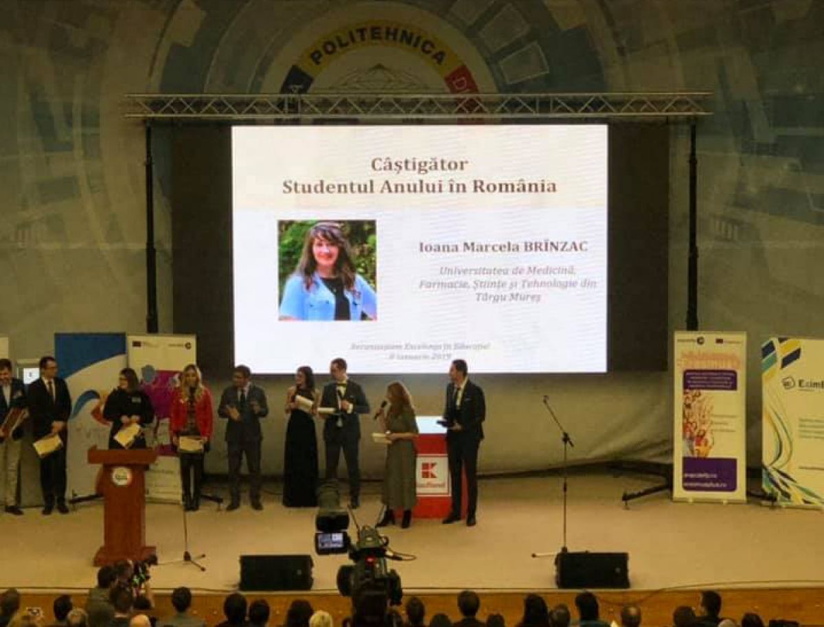 Câştigătoare la categoria Studentul anului în România a fost Ioana Marcela Brînzac, medic rezident pediatrie, absolventă a Universității de Medicină, Farmacie, Științe și Tehnologie din Târgu Mureş. Originară din Botoșani, Ioana Marcela Brînzac spune despre ea că este o persoană sensibilă, ambițioasă și perseverentă căreia îi place să ajute oamenii. Fiind pasionată încă din liceu de biologie și chimie, Facultatea de Medicină a fost o alegere firească, susține aceasta, care transmite că UMFST Târgu Mureș ocupă un loc special în inima ei, fiindcă aici a învățat că prin muncă, perseverență și răbdare poți obtine tot ce îți dorești.