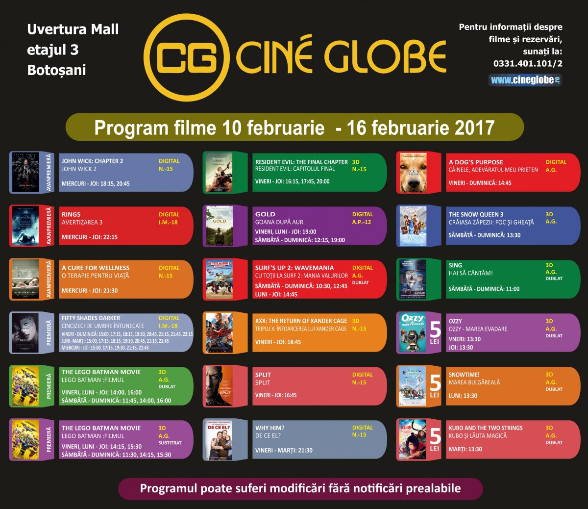 Cinefilii din Botoşani pot petrece momente plăcute în perioada 10 – 16 februarie la Cine Globe din incinta Uvertura Mall cu noi pelicule care vor fi proiectate în avanpremieră.