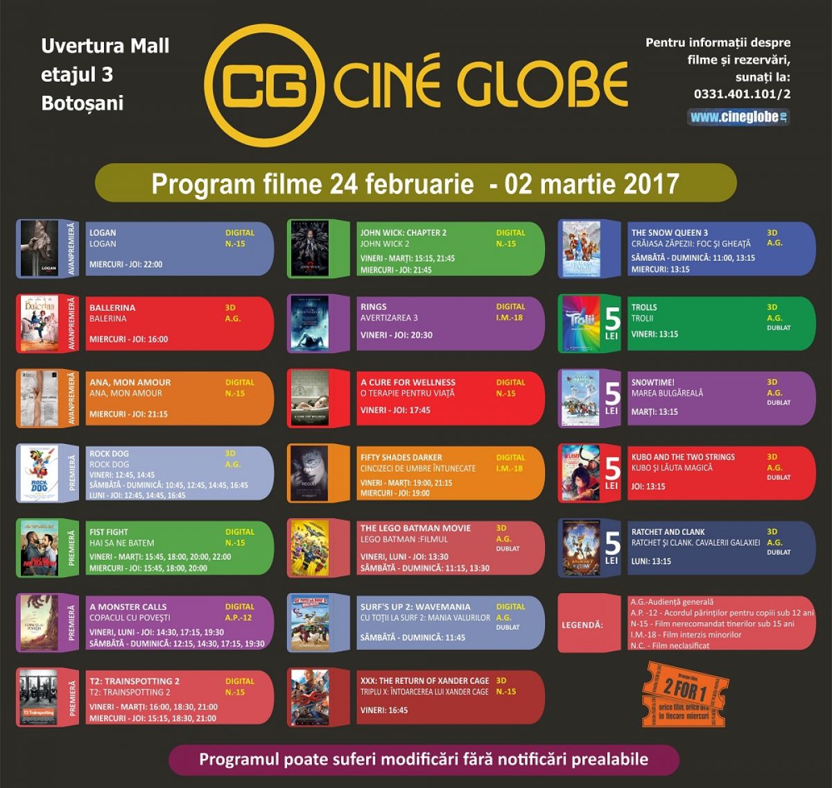 Iubitorii de film din Botoşani pot petrece momente plăcute în perioada 24 februarie – 2 martie la Cine Globe din incinta Uvertura Mall cu noi pelicule care vor fi proiectate în avanpremieră.