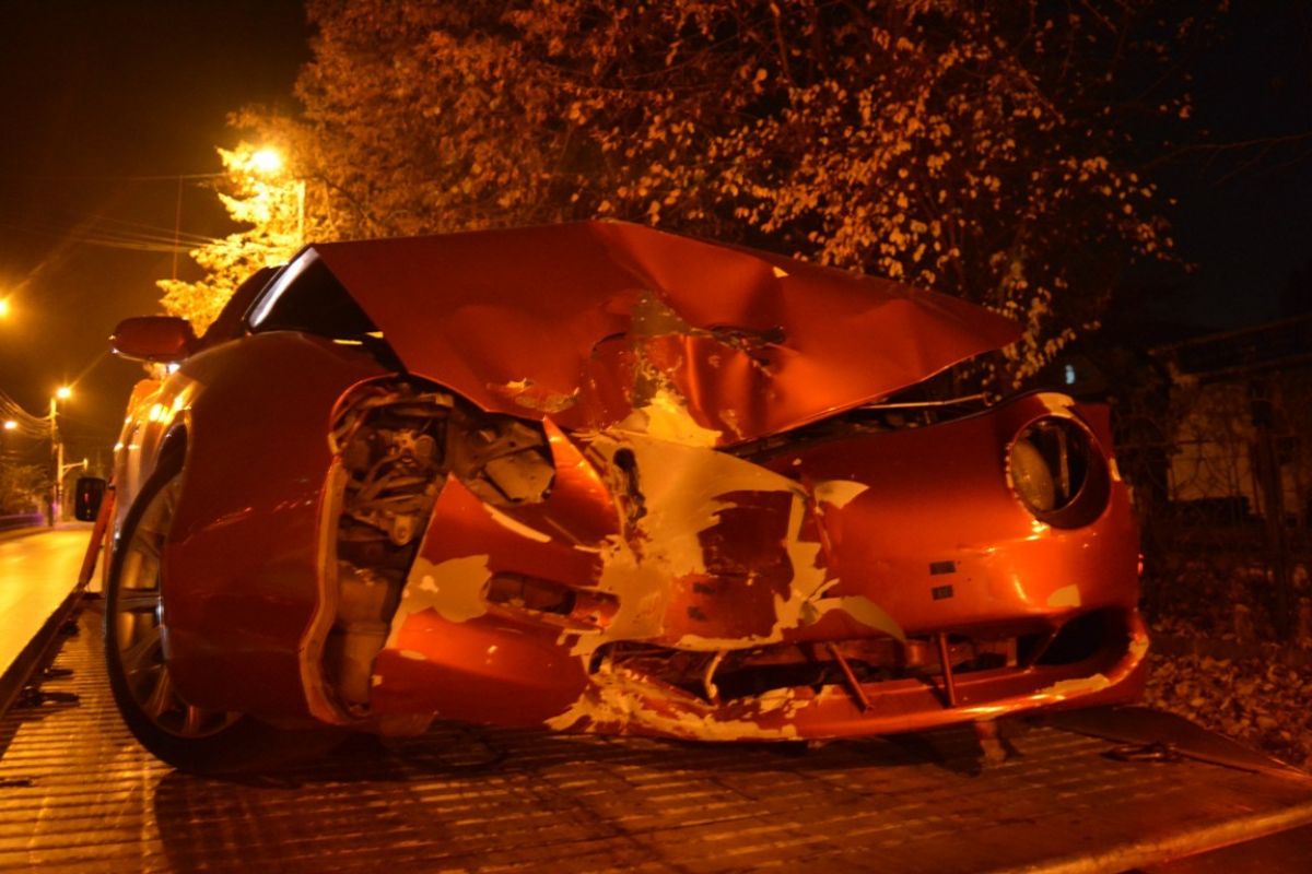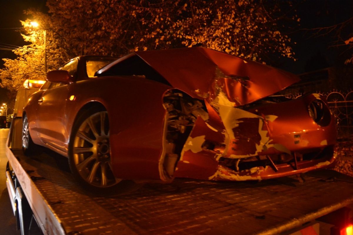 A derapat, a ajuns pe sensul opus și s-a izbit violent într-un stâlp de beton.