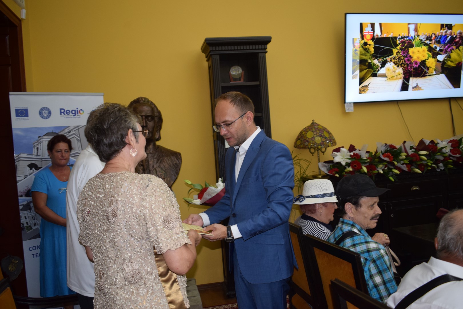 Aproape 40 de cupluri au fost premiate pentru nunta de diamant și aur. Au fost felicitate 36 de familii care împlinesc 50 de ani de căsătorie și 3 cupluri pentru 60 de ani de conviețuire.