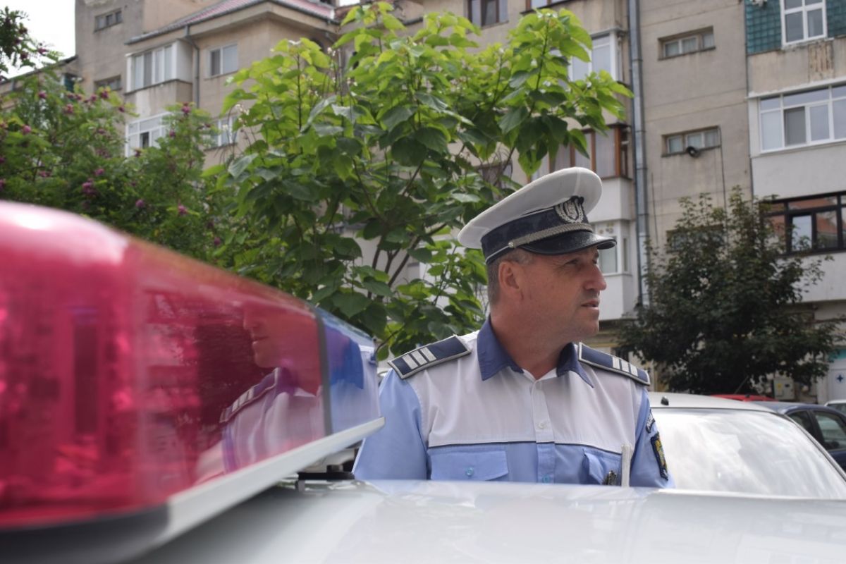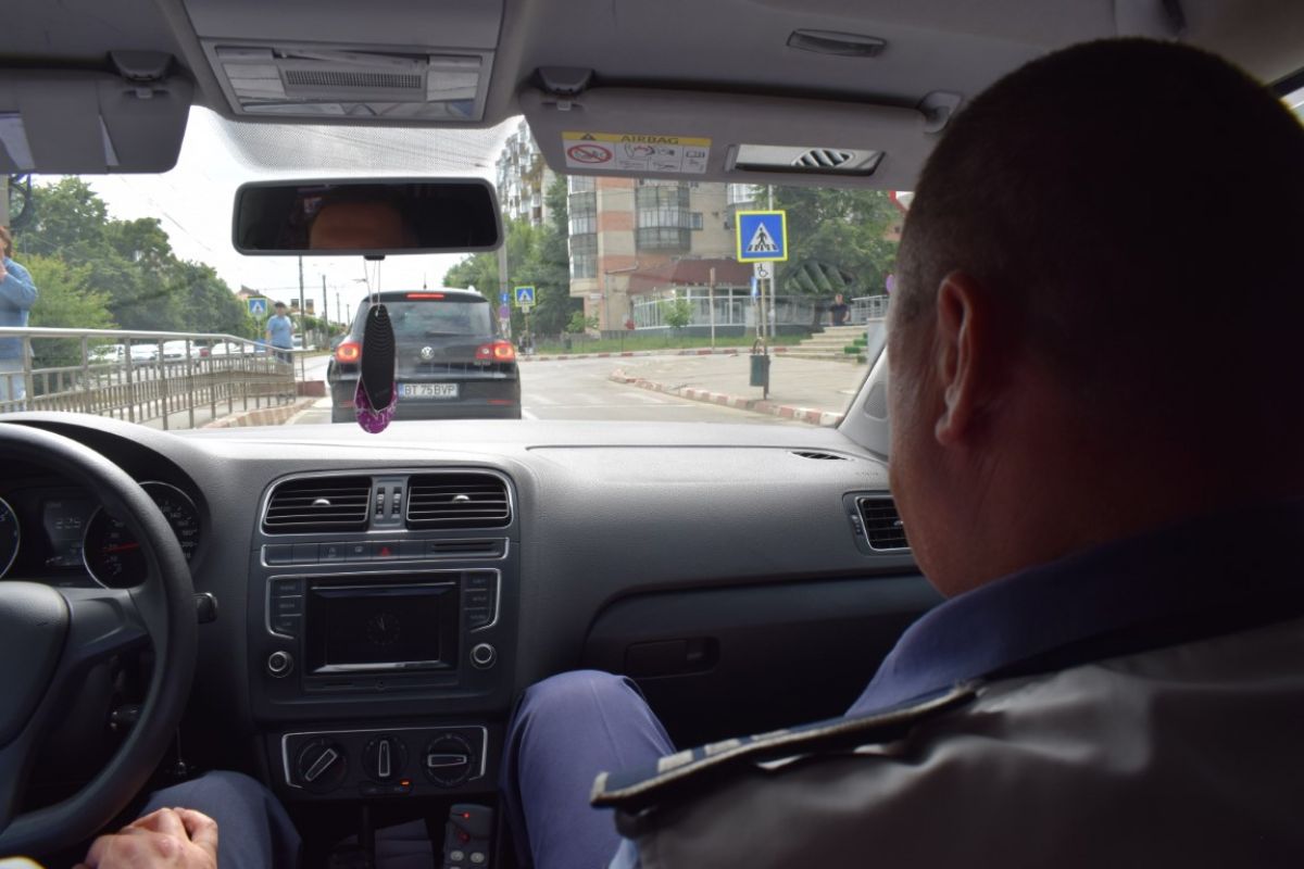 În cea mai mare parte a timpului, când nu sunt înregistrate apeluri la 112, mașina Poliției patrulează prin municipiu. În patrula noastră, Vasile Vamanu a preluat natural rolul de ghid al misiunii, colegul său îl aproba, din timp în timp, cu o înclinare a capului.