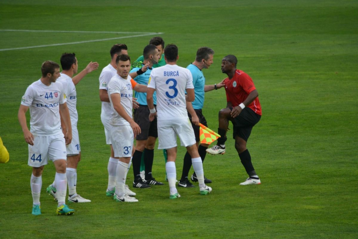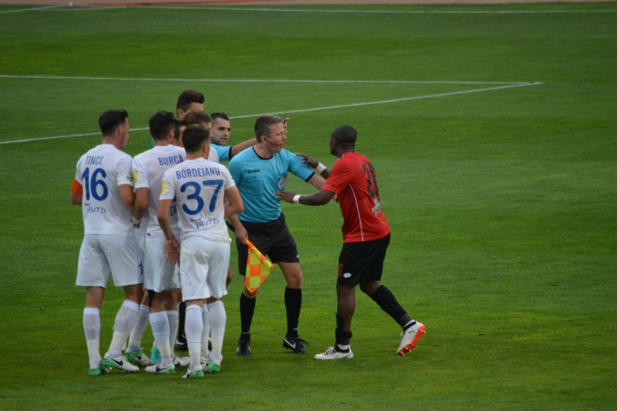 Atitudinea acestuia i-a scos din minţi atât pe antrenorii şi jucătorii moldoveni, cât şi pe spectatori, care au protestat vehement.