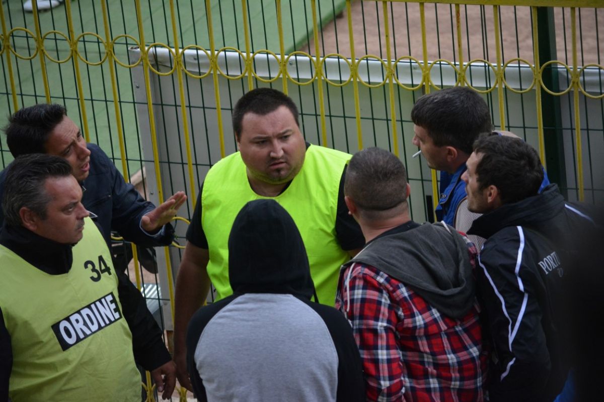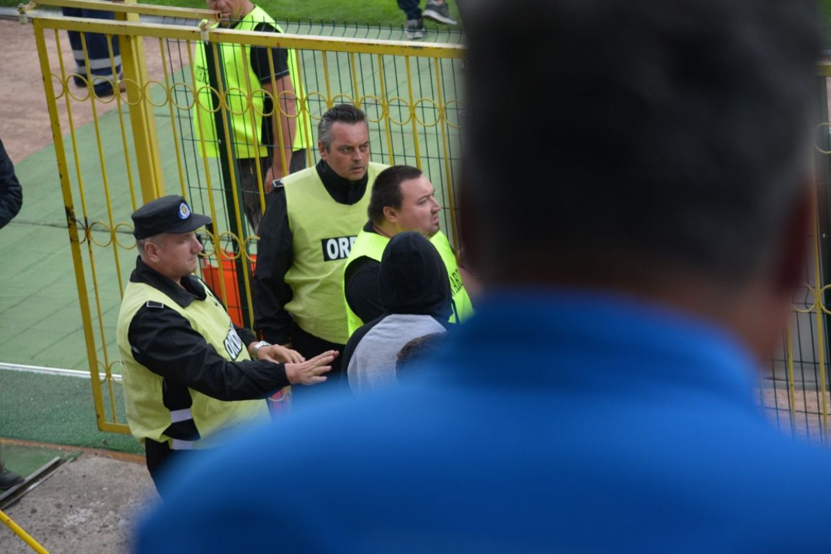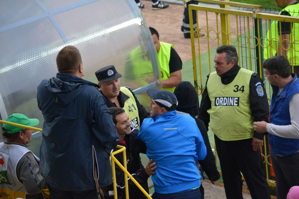 Spiriele s-au încins şi în tribune. Unii spectatori s-au urcat pe garduri, iar un altul a a vrut să ajungă la „cavalerii fluierului”, lovind cu pumnii tunelul mobil spre vestiare şi fiind cu dificultate îndepărtat de bodyguarzi.
