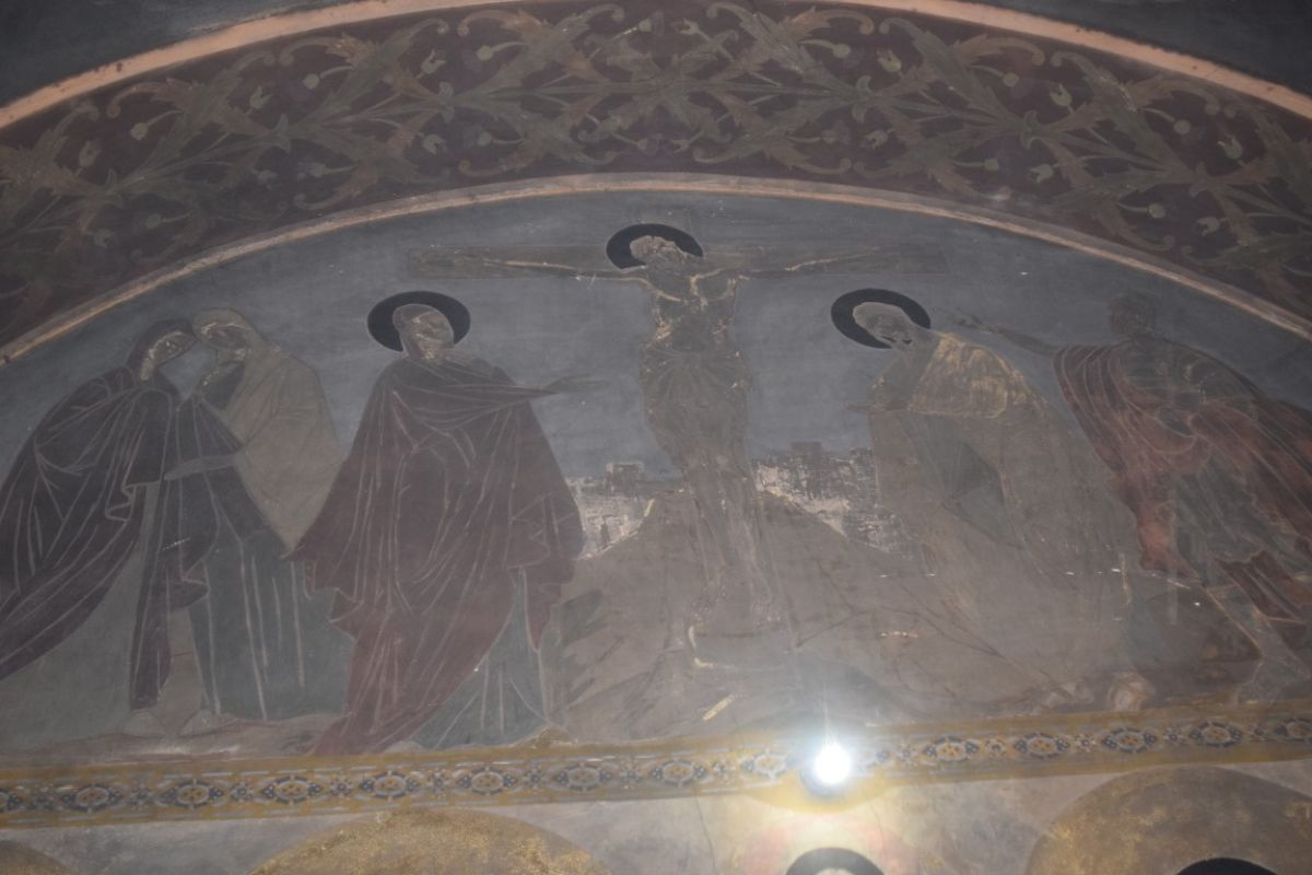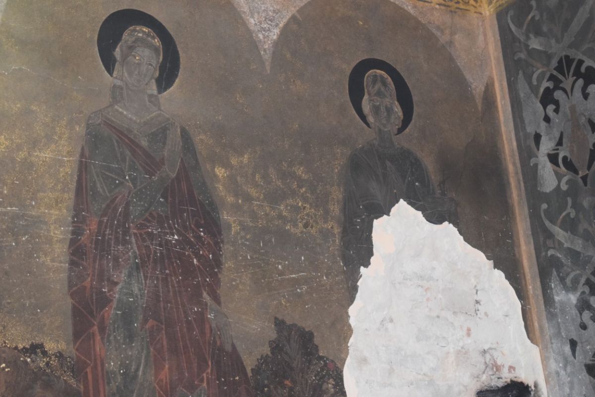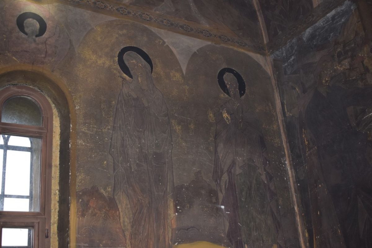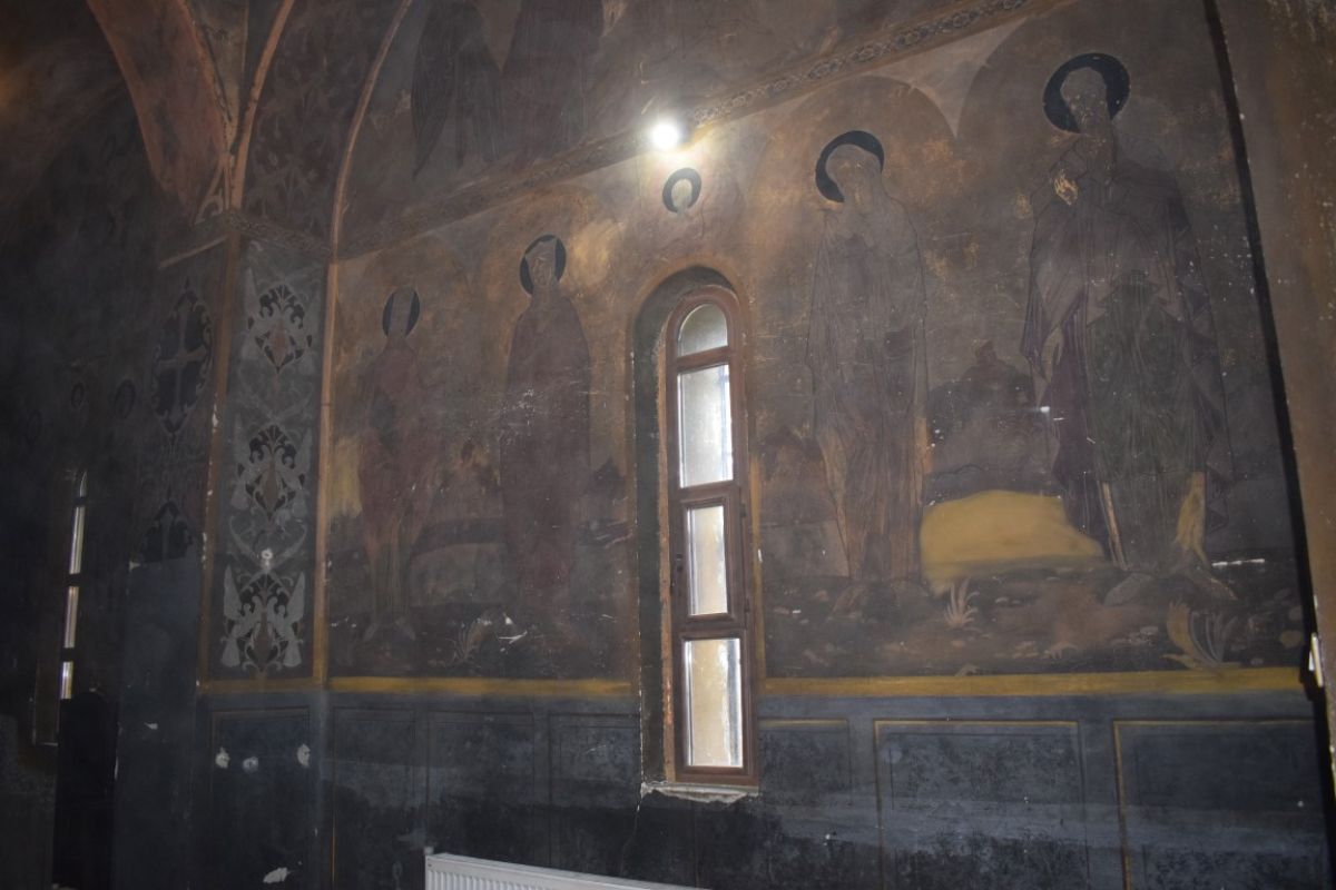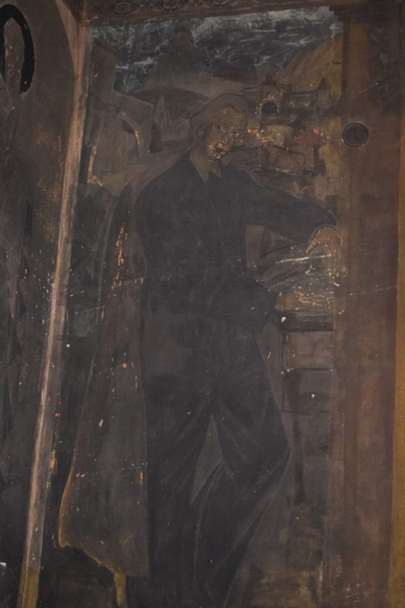 De altfel, ieri un muncitor cu un ciocan începuse să înlăture picturile de pe pereții Bisericii, până la tencuială.