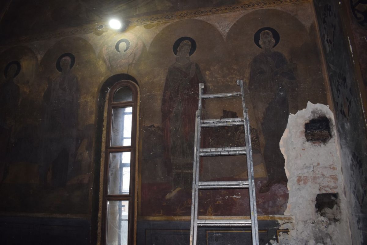 De ieri s-au început lucrări de restaurare și consolidare, la cererea expresă a preotului care a decis să elimine picturile ce au făcut celebră această Biserică.