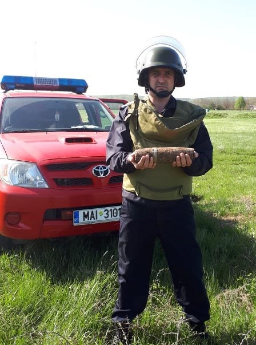 Obuzul exploziv cal. 76 mm, fără focos, a fost descoperit în grădina unui localnic din comuna Cosula, pe timpul executării unor lucrări agricole.