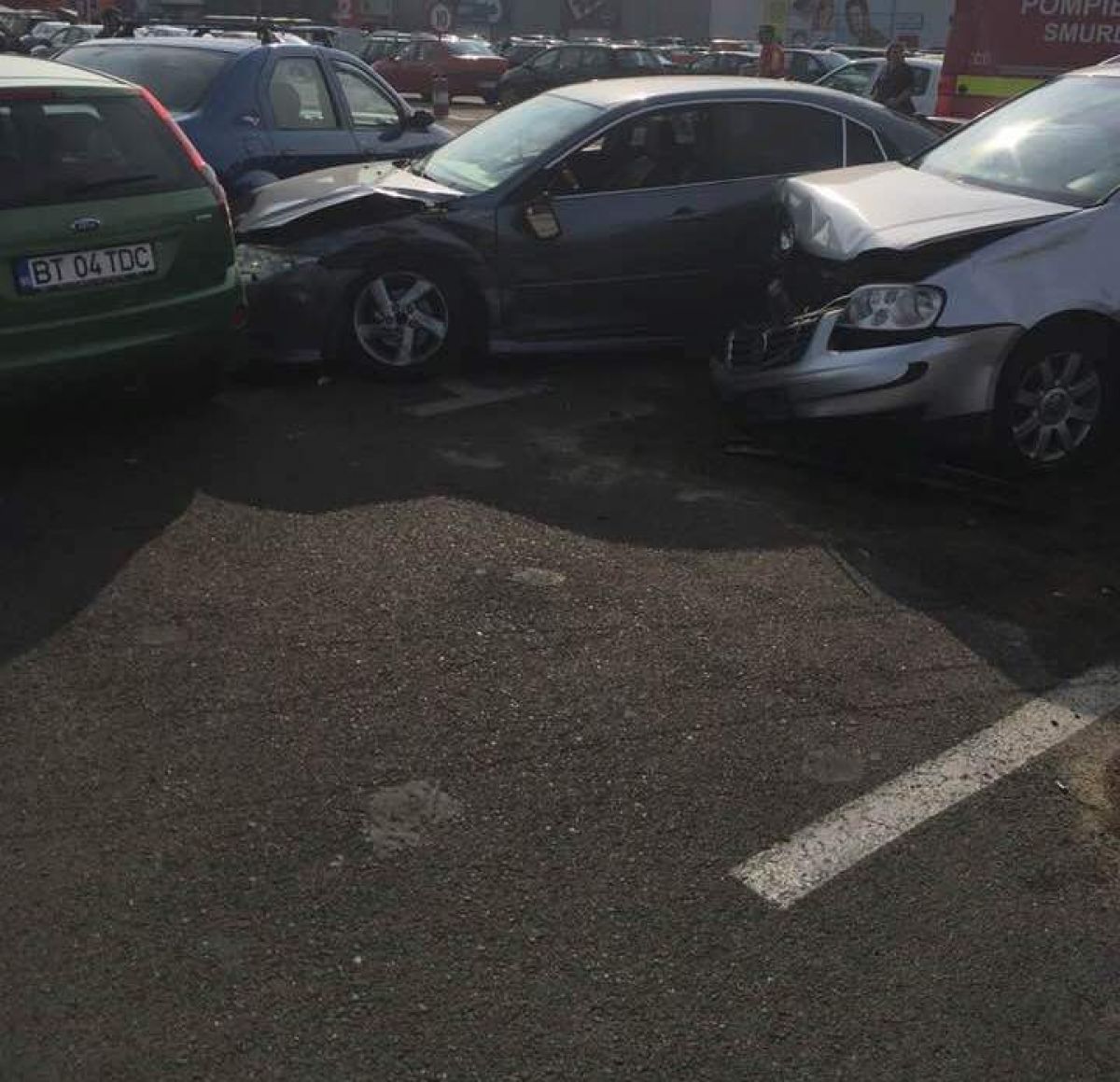 Carambolul a avut loc vineri în parcarea hipermarketului Carrefour din municipiul Suceava.